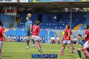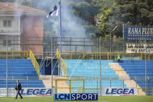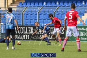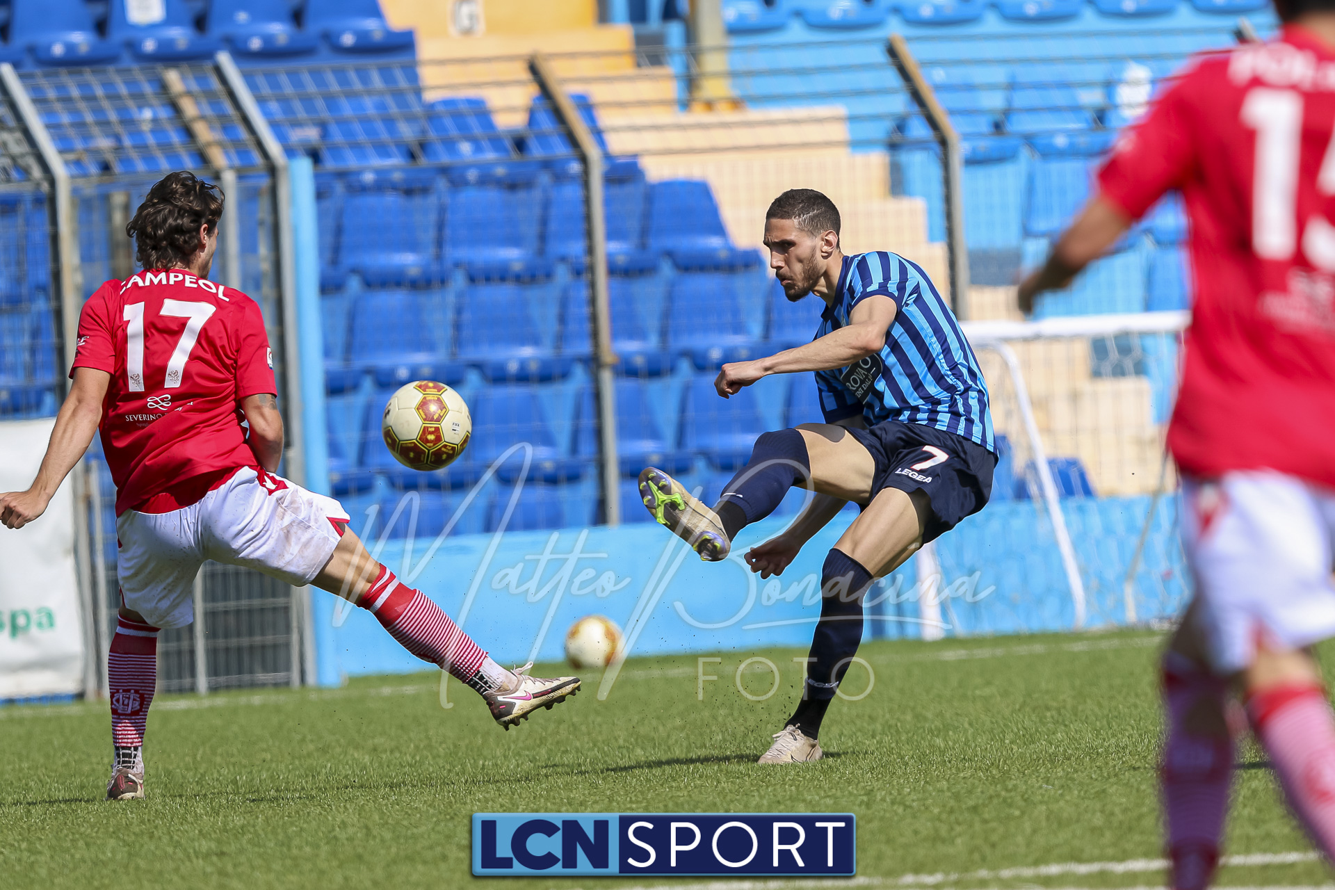 Al 32′ rapido capovolgimento di fronte: prima Azzi entra da destra, si accentra e conclude col mancino ma “cicca” il pallone; subito dopo lancio lungo per Sicurella che sorprende la difesa bluceleste ma calcia di potenza alto in Curva Nord. Chance importante per Galligani al 40′ che sfiora il palo alla destra di Borsellini con un rasoterra forte e teso. Al 45′ l’occasione più limpida per il Lecco con splendido assist per Iocolano che mette la palla sulla testa di Capogna, ma il centravanti romano cerca di piazzarla senza grande potenza.