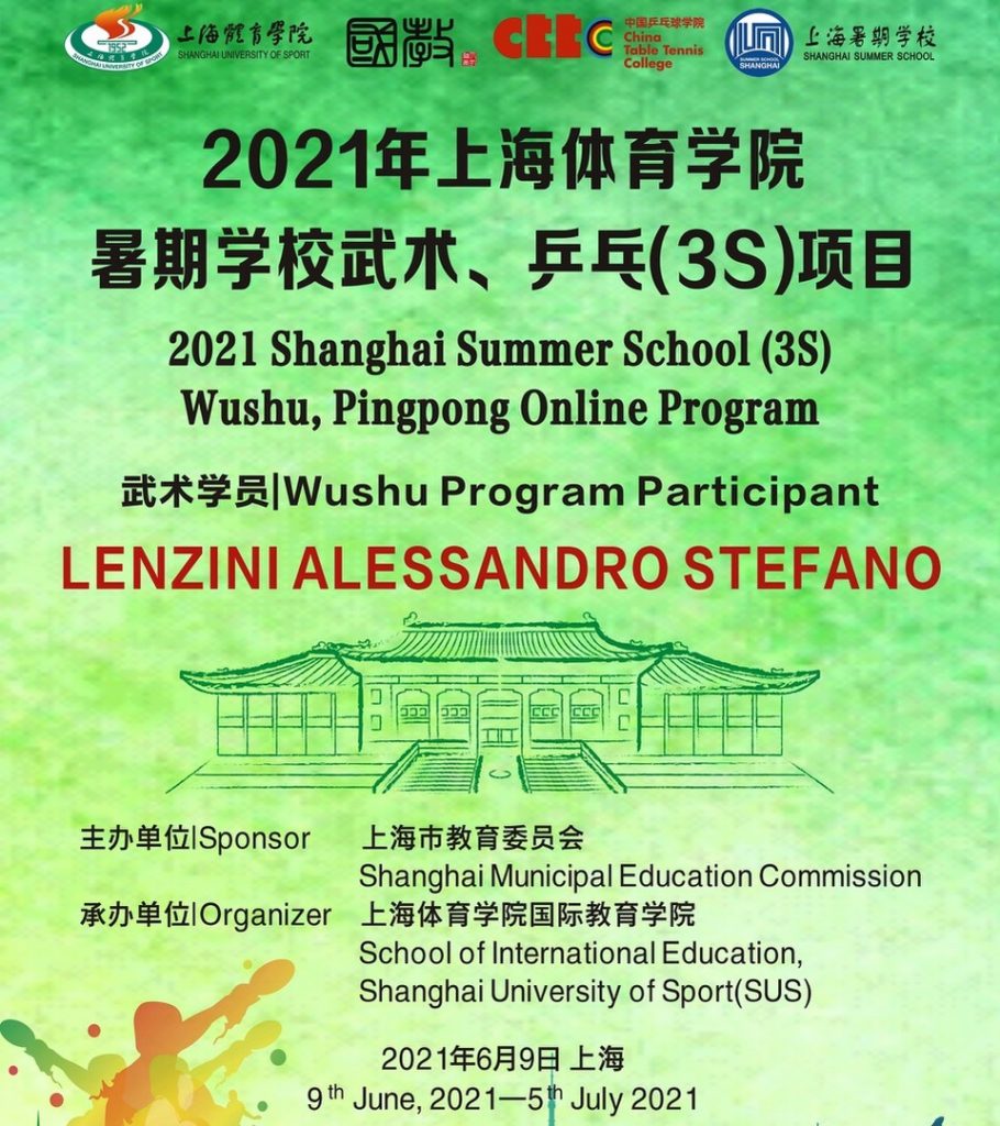 Per il Maestro Lenzini invece è ora di rimettersi sotto a studiare: La municipalità di Shanghai gli ha infatti nuovamente offerto una borsa di studio per Partecipare alla Shanghai University Summer School. Un progetto della durata di un mese che vedrà atleti di Arti Marziali ( e Ping Pong) impegnati in lezioni ed esercitazioni quotidiane che spazieranno dalla tecnica, alla cultura alle lezioni di lingua Cinese.