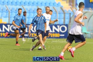 Un’ora o giù di lì per iniziare a prendere ritmo, distanze e chiudere la prima settimana di raduno. Nel pomeriggio di sabato 24 la Calcio Lecco 1912 ha sostenuto il primo test in famiglia della sua stagione: il gruppo squadra è stato diviso in tre da mister Mauro Zironelli, che ha mandato in campo quasi tutti gli effettivi (eccezion fatta per Lino Marzorati e per Tomi Petrovic che in giornata ha ricevuto il vaccino) durante la prima uscita “semi pubblica”, aperta solo alla stampa, del “Rigamonti-Ceppi”. La notizia più importante è quella relativa alla presenza del patron Paolo Leonardo Di Nunno, che prima della sgambata ha scambiato qualche battuta con gli elementi più esperti del gruppo e al termine si è soffermato con lo staff, oltre che con i dirigenti Angelo Maiolo, Domenico Fracchiolla e il presidente onorario Angelo Battazza. Un segnale di vicinanza dopo le dichiarazioni, ancora una volta non concilianti per quanto non dirette verso chi lavora in via Don Pozzi, della scorsa settimana.