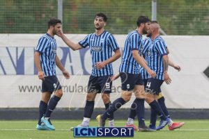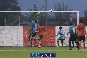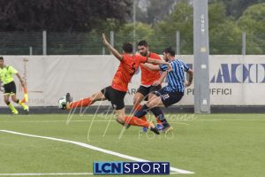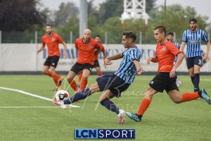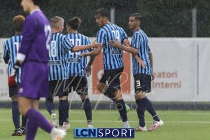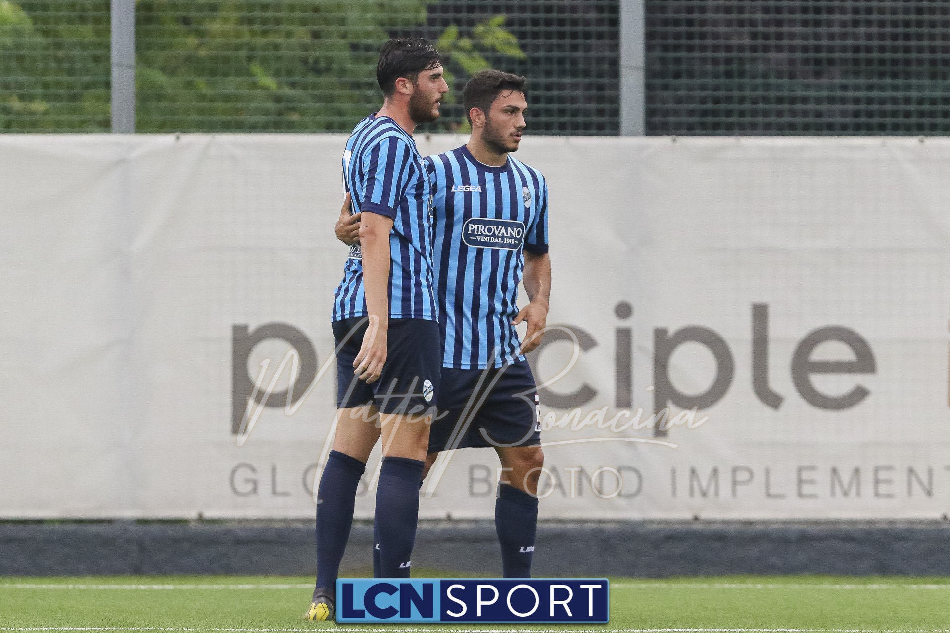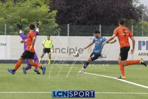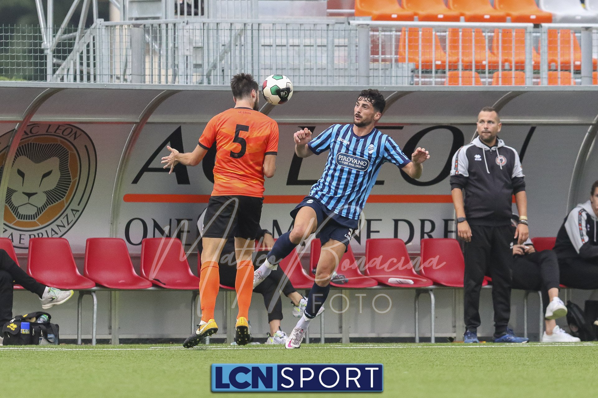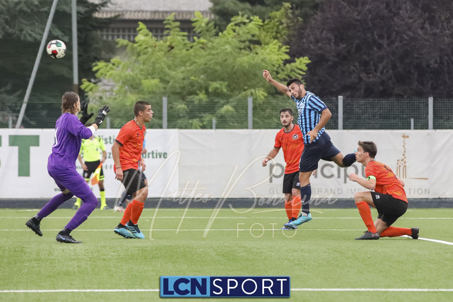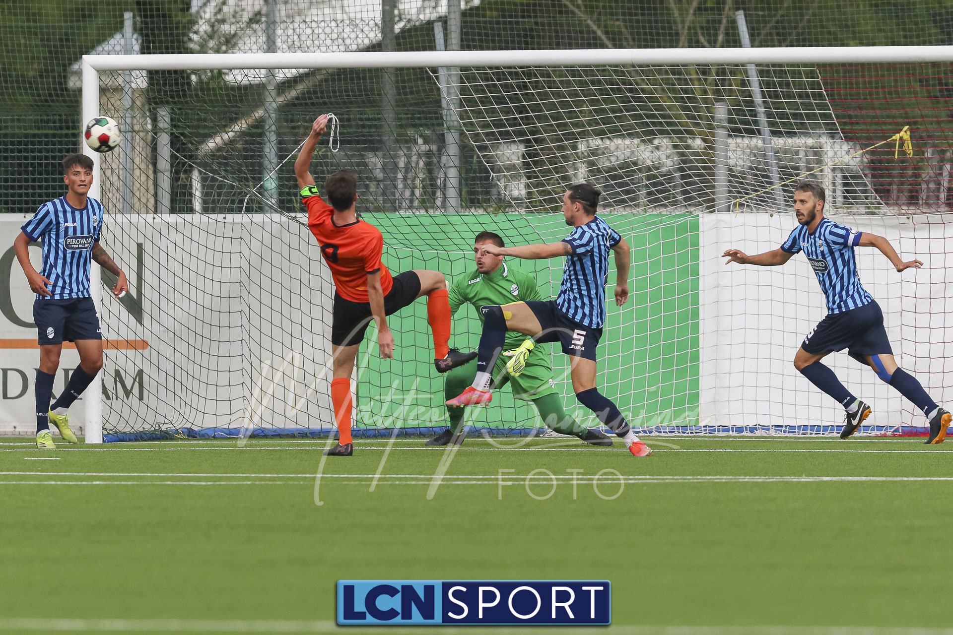 Il Leon di mister Alberto Motta si rintana sulla trequarti difensiva e riparte veloce, facendo perno soprattutto sulle lunghe e veloci leve di un apprezzato ex come Alessandro Ronchi: dalle parti di Pissardo transitano due-tre palloni pericolosi nel corso del primo quarto d’ora, ma ai padroni di casa manca il tocco decisivo. All’esterno dell’impianto qualche tifoso fa sentire il proprio supporto e accende qualche torcia, Lora e Lakti alzano i giri del motore e l’equilibrio si sposta decisamente dalla parte bluceleste: Haidara si rende pericoloso all’11 con un bel tiro da dentro l’area, poi serve il miglior Pulze, prodotto del vivaio bluceleste, per murare Mastroianni al 25′. Sorte simile per Reda al 32′, ma sul conseguente calcio d’angolo Giudici la piazza bene sul primo palo, Enrici fa tutto in maniera perfetta: in terzo tempo svetta sopra tutti e mette in fondo al sacco con una bella girata. Il vantaggio rischia di durare solo 10′: Lakti perde una brutta palla a metà campo, Bonseri viene lanciato tutto solo davanti a Pissardo da Ferrè, calcia a rete con successo, ma si alza la bandierina del guardialinee che rende tutto vano.