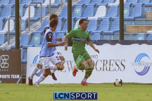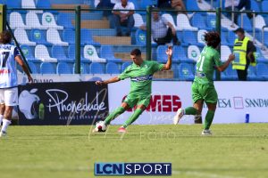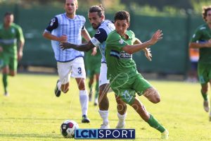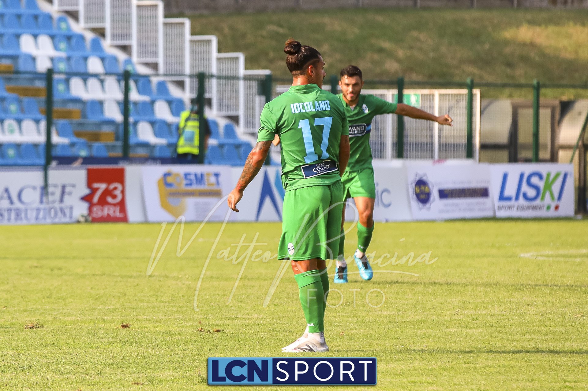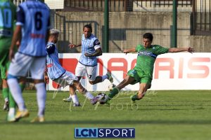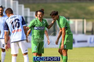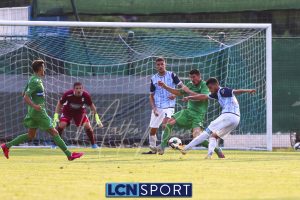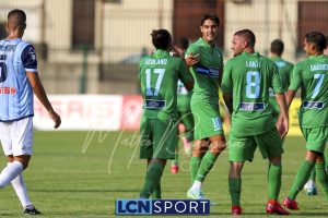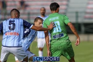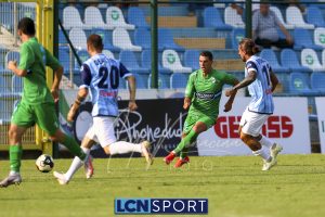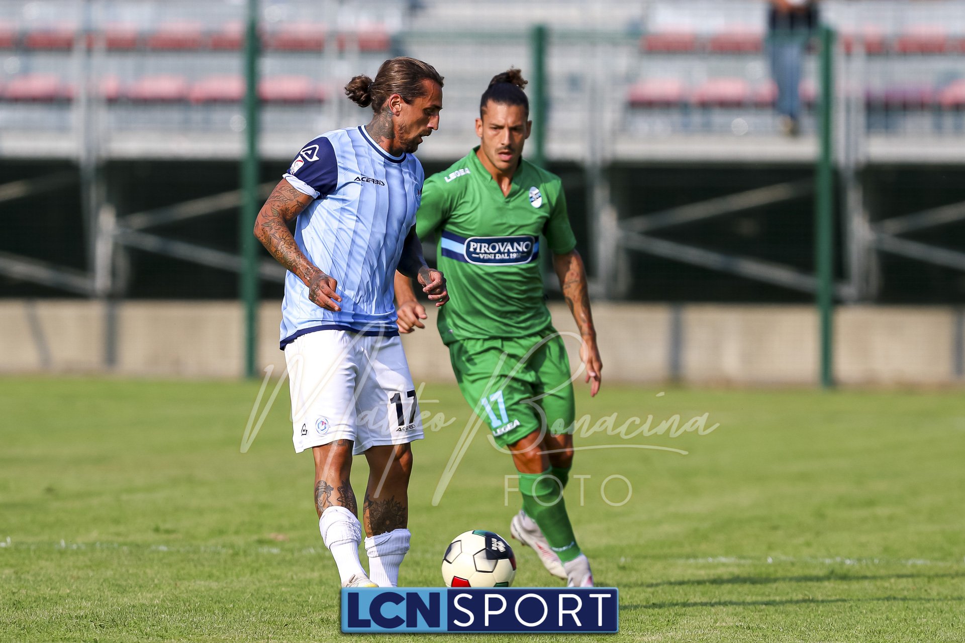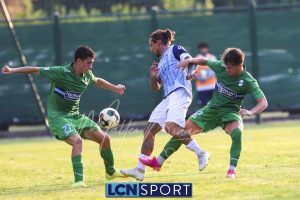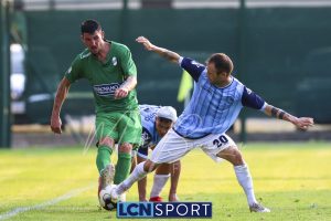 Il Lecco prende in mano sin da subito il pallino del gioco, ma le occasioni latitano fino al 22′: Iocolano prende i tre passi lunghi e, dai venti-ventidue metri, mette la palla sopra la barriera e sotto l’incrocio dei pali alla destra di Pagno, che compie un gran volo ma non può nulla. Applausi a scena aperta per il “17” bluceleste, oggi in maglia verde. L’Albinoleffe cresce nell’ultimo quarto d’ora e si fa pericolosissimo: prima Nichetti (41′) manca il bersaglio grosso di pochissimo con un bel destro dal limite, poi Cori (43′) calcia dalla sinistra e trova la decisiva deviazione di Battistini che mette fuori tempo l’incolpevole Pissardo; infine (48′) Tomaselli si fa trovare tutto solo, ancora una volta con la sinistra, e con una bella conclusione al volo prende nuovamente in controtempo il portiere lecchese: rimonta completata per la squadra di mister Michele Marcolini.