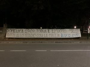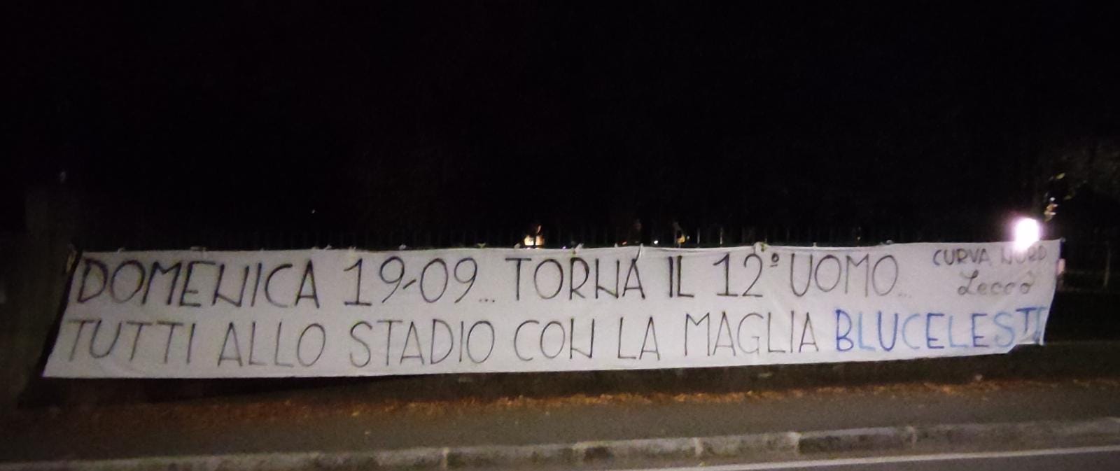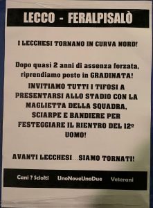Il pomeriggio di Lecco-Legnago era stato quasi perfetto: bella giornata, larga e convincente vittoria, circa mille persone finalmente allo stadio, ma… Un brutto vuoto al centro di una comunque rumorosa Curva Nord ad aggiungere quel “quasi”. Gli ultras, infatti, avevano deciso di non prendere il proprio posto in Gradinata a causa di alcuni problemi sorti dopo la partecipata amichevole estiva con la Reggiana, ma l’episodio è destinato a rimanere isolato. Lo testimoniano la massiccia presenza di Gorgonzola e i tanti striscioni apparsi nella notte per le vie di Lecco: per la sfida con la FeralpiSalò anche la parte più calda del tifo bluceleste sarà regolarmente presente in Curva Nord e l’invito, ribadito su tutti gli striscioni appesi per il capoluogo, è quello di prendere posto al loro fianco, rigorosamente vestiti di blu e celeste.