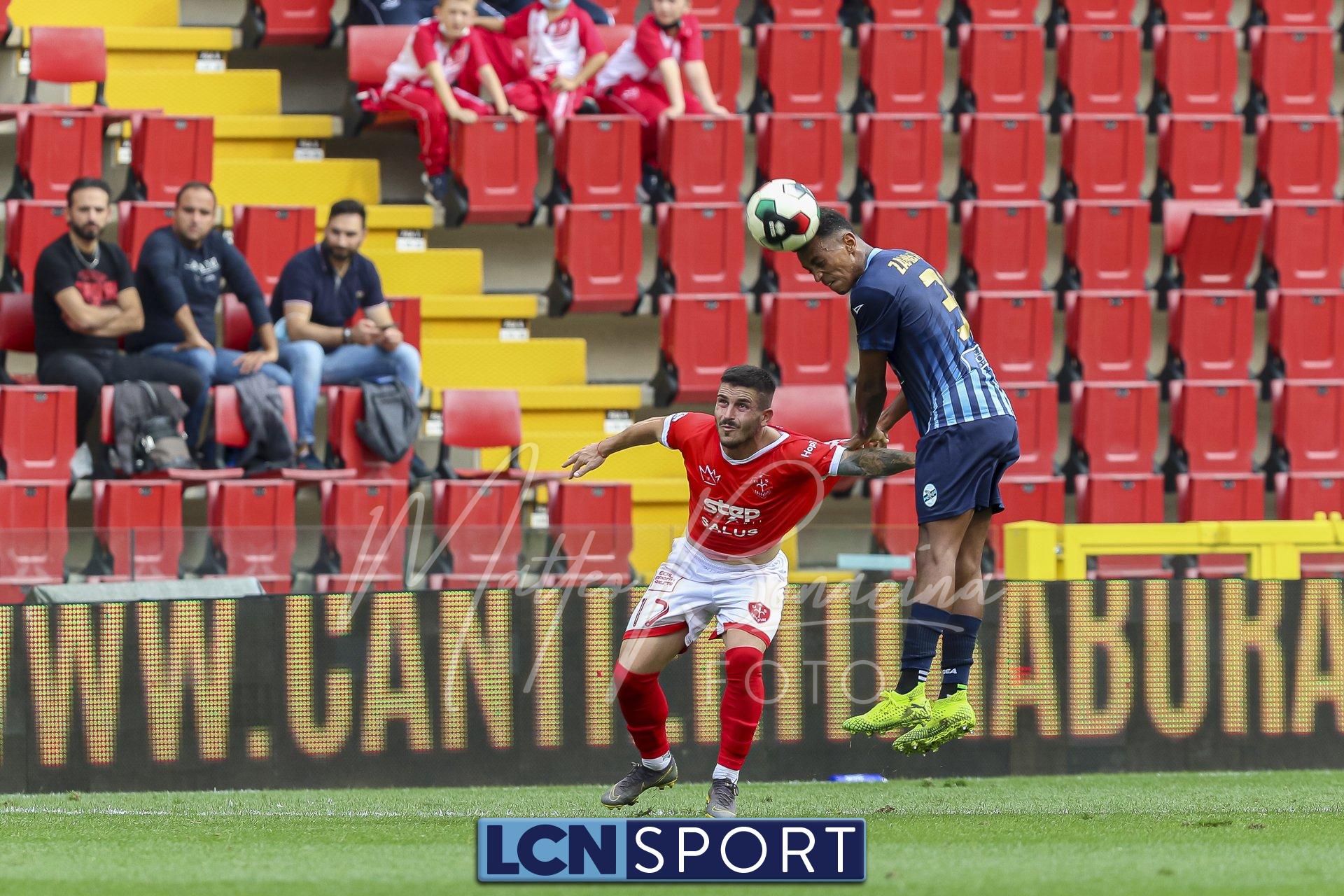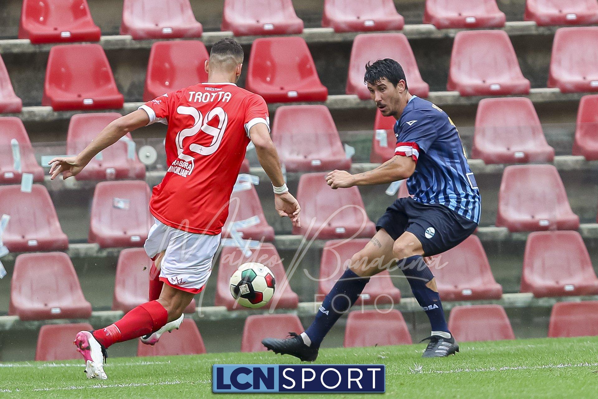Al 43′ il raddoppio dei padroni di casa: palla persa sulla trequarti avversaria, ripartenza condotta da De Luca, scarico per Trotta che salta Marzorati e insacca in diagonale per il 2-0.