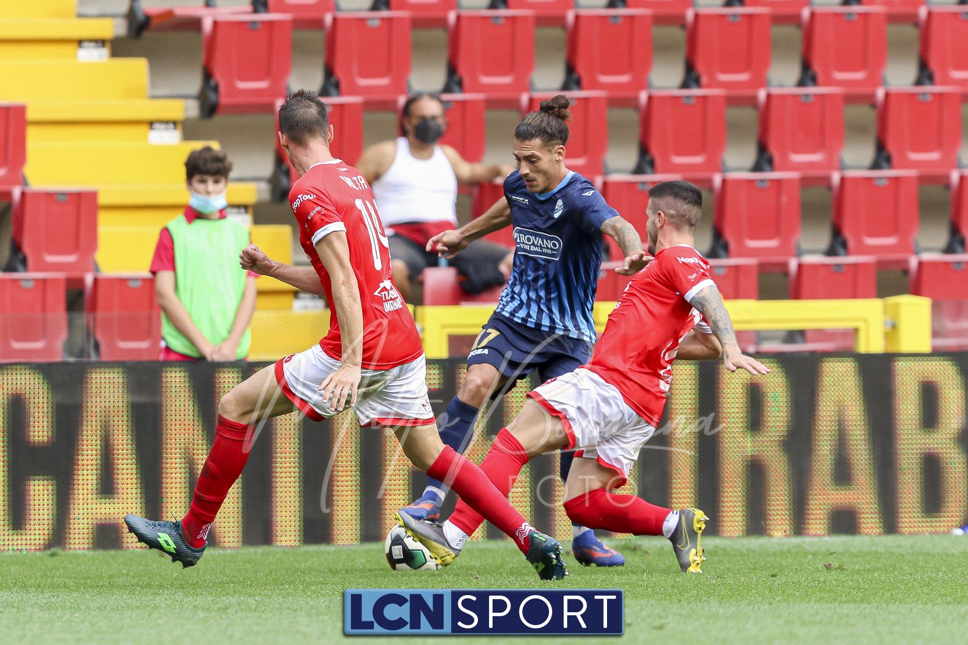 Lecco (3-4-3): Pissardo; Merli Sala (dal 24′ s.t. Celjak), Marzorati, Enrici; Zambataro, Masini, Kraja (dal 31′ s.t. Lakti), Giudici (dal 16′ s.t. Lora); Tordini (dal 1′ s.t. Mastroianni), Ganz (dal 16′ s.t. Petrovic), Iocolano (Ndiaye, Ciancio, Galli, Di Munno, Reda, Bia, Buso). All. Zironelli.