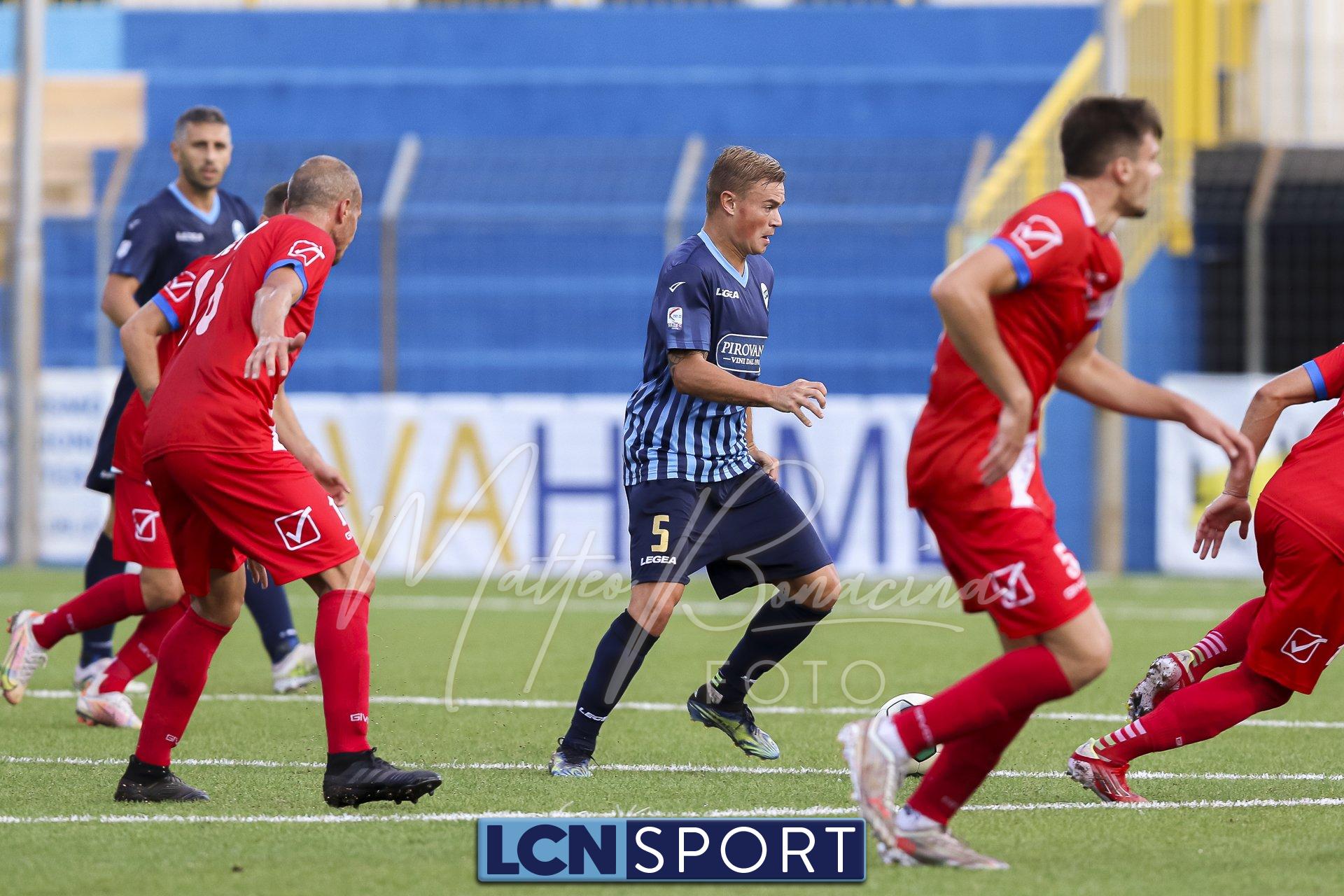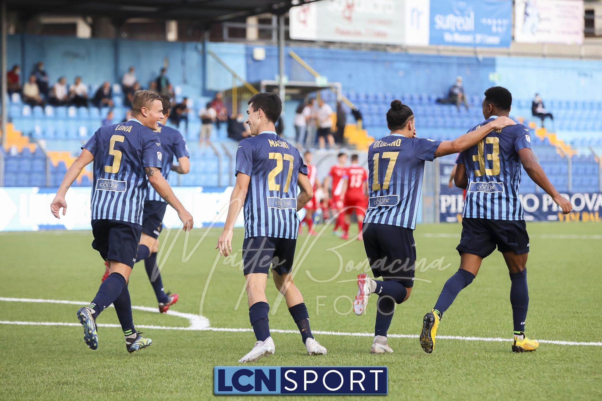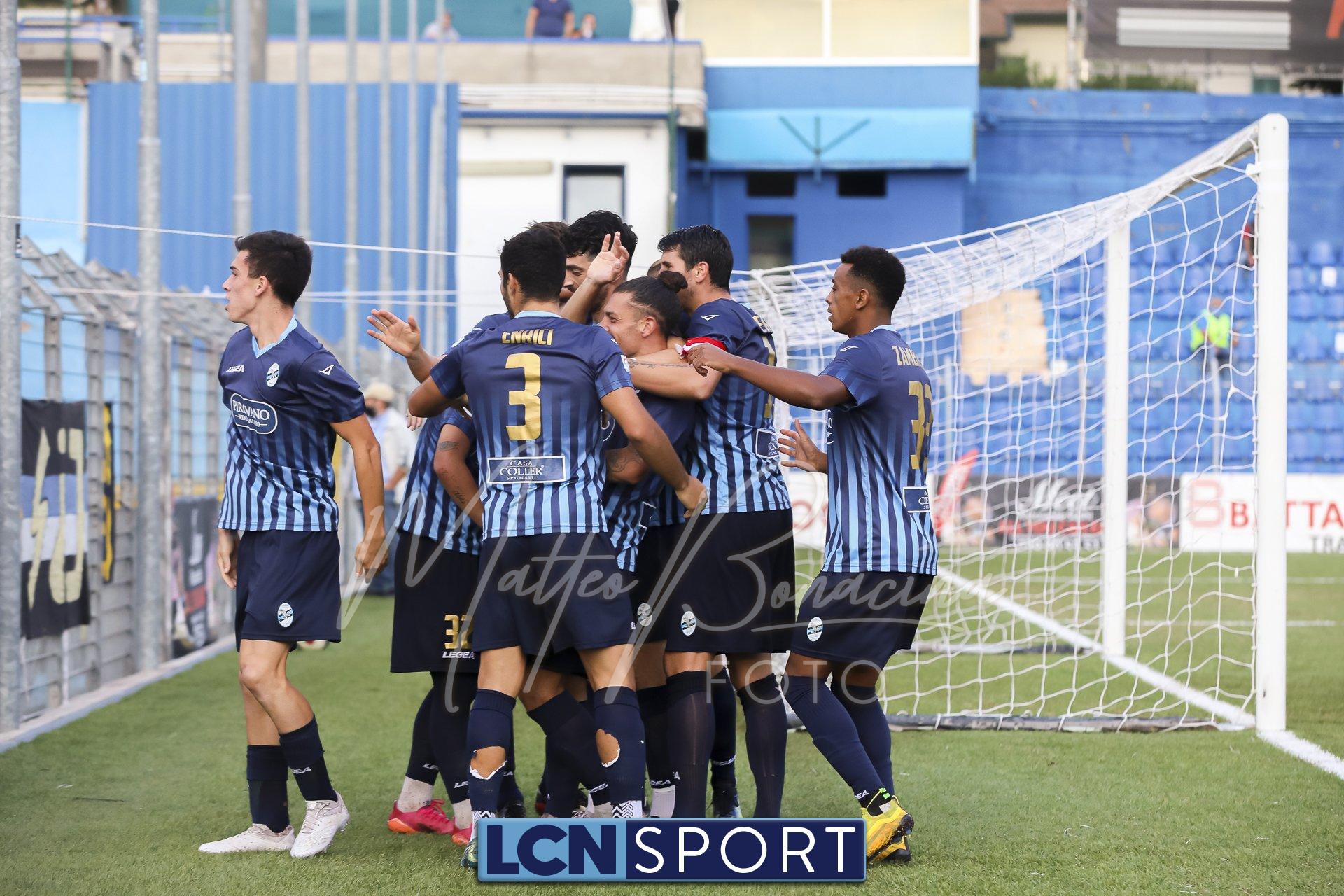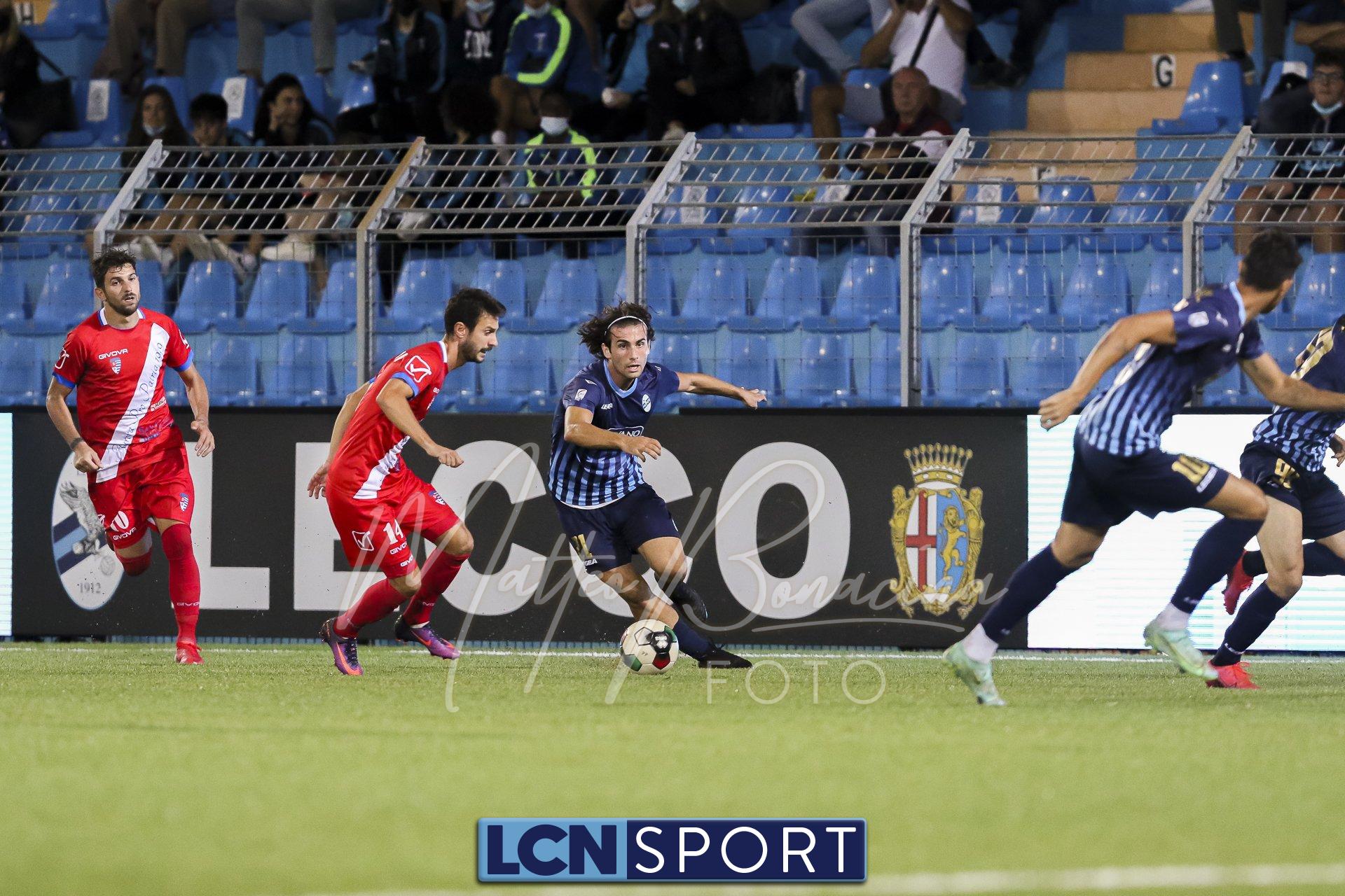 Lecco (3-4-3): Pissardo; Merli Sala (dal 19′ s.t. Battistini), Marzorati, Enrici; Celjak, Masini, Lora, Zambataro (dal 10′ s.t. Giudici); Tordini (dal 10′ s.t. Kraja), Mastroianni (dal 25′ s.t. Petrovic), Iocolano (dal 25′ s.t. Buso). (Ndiaye, Galli, Lakti, Ganz, Petrovic, Di Munno, Reda, Bia, Buso). All. Zironelli.