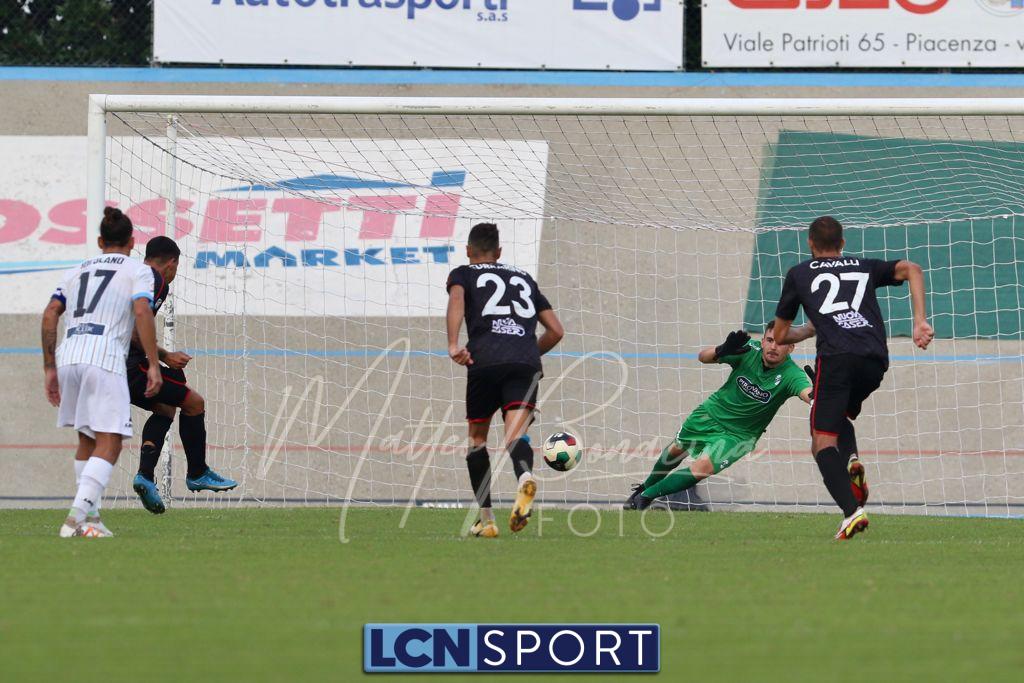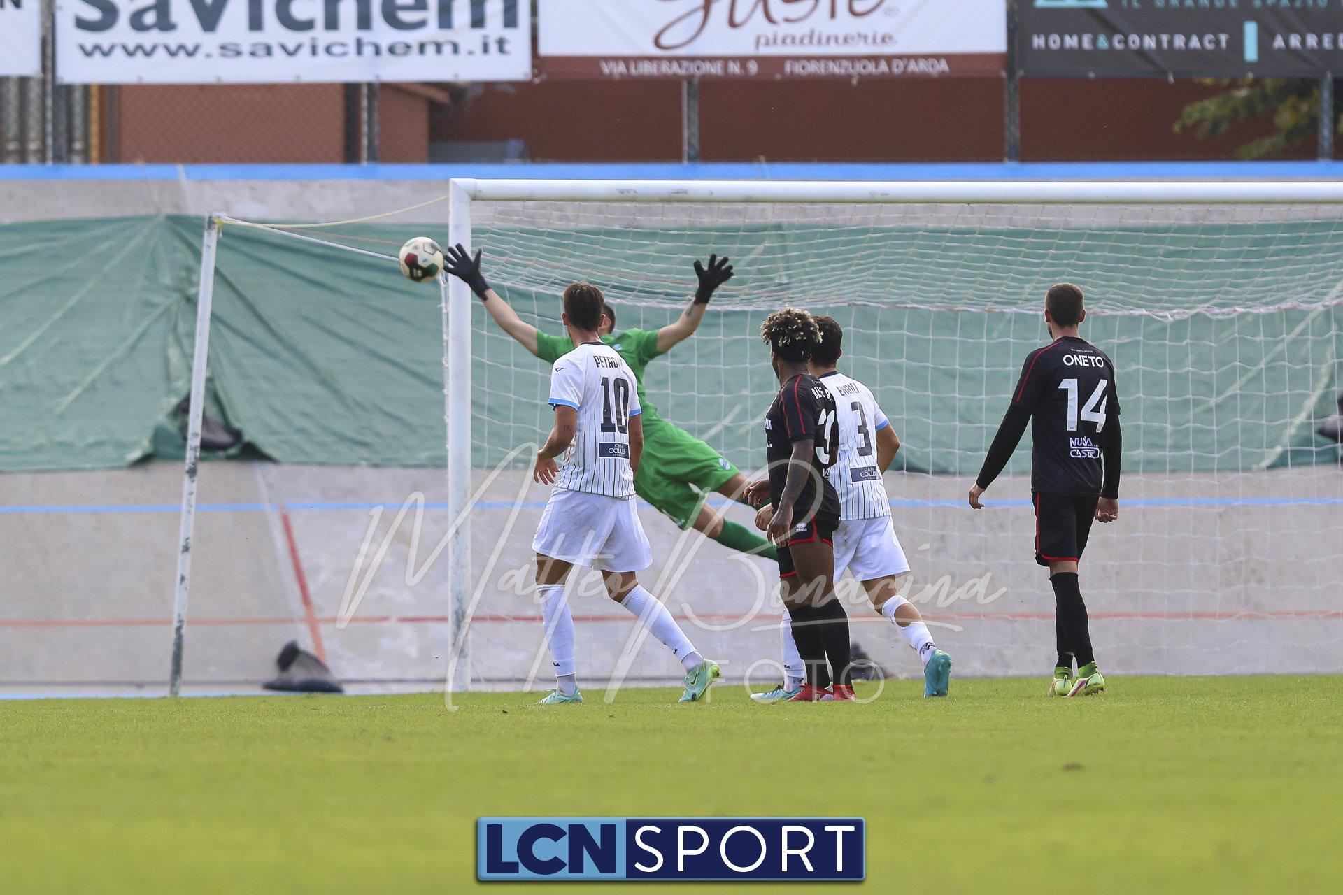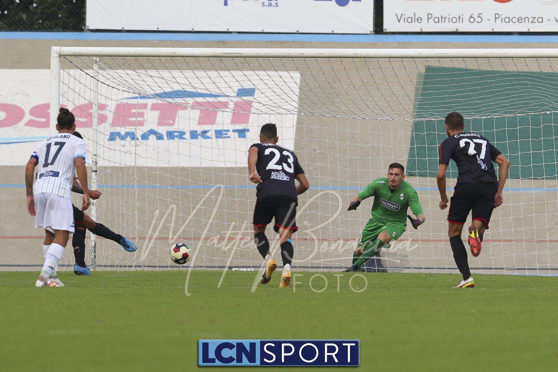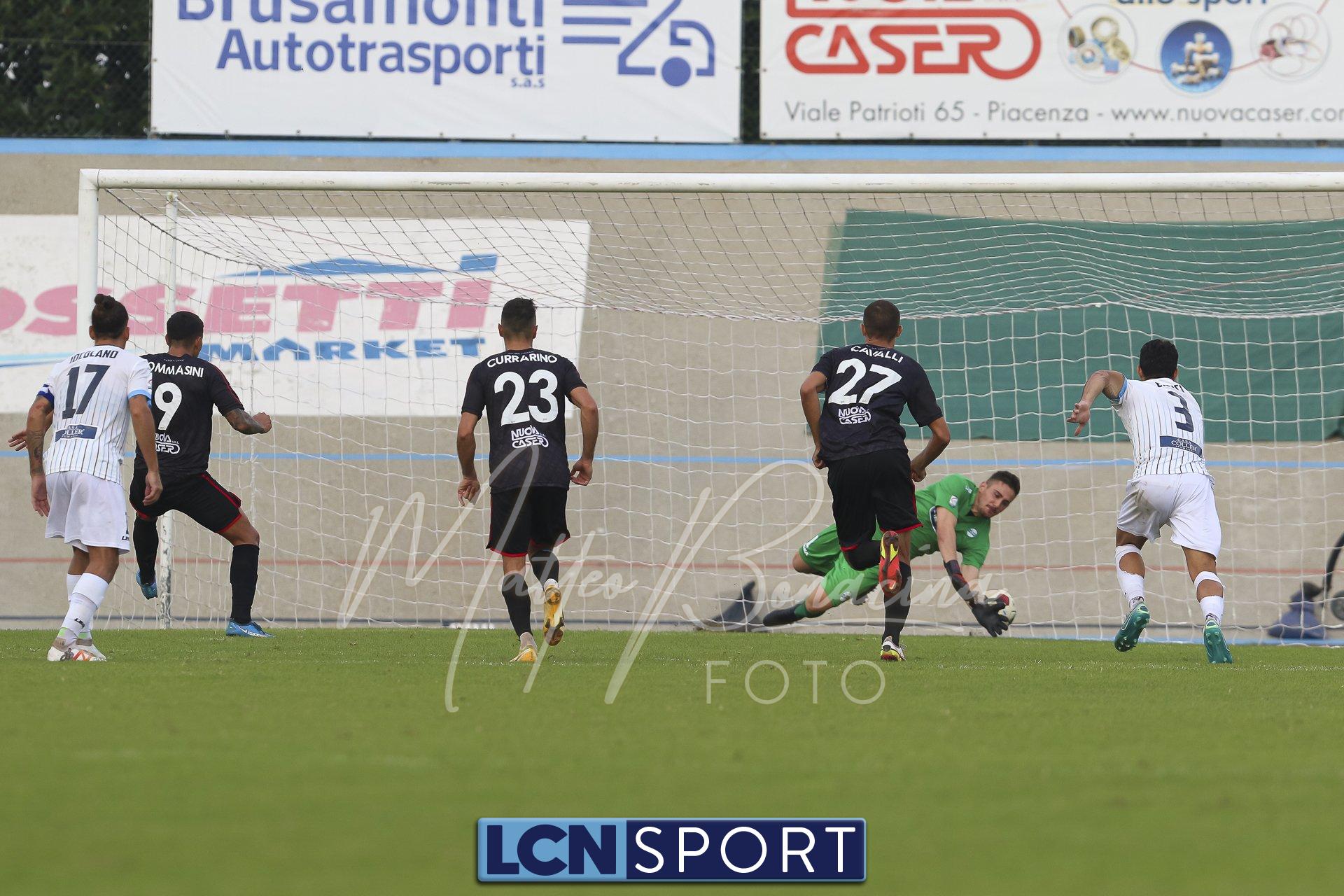 Il vantaggio del Lecco al 24′ con la spizzata vincente di Enrici: Kraja crossa lungo, Ganz cerca di piazzarla sul palo opposto con un destro preciso, il difensore bluceleste in spaccata insacca alle spalle di Battaiola. La reazione del Fiorenzuola nel tiro dalla distanza di Bruschi, Pissardo compie un miracolo togliendola dall’incrocio. Dall’angolo chiedono un fallo di mano non visto, Currarino calcia e poi Potop e Pissardo si tuffa all’ultimo, con un successivo guizzo, da terra, per toglierla dai piedi di Ferri pronto a depositarla in rete. Poco dopo, Bruschi calcia dai venti metri con violenza, centrale, Pissardo la blocca in due tempi.