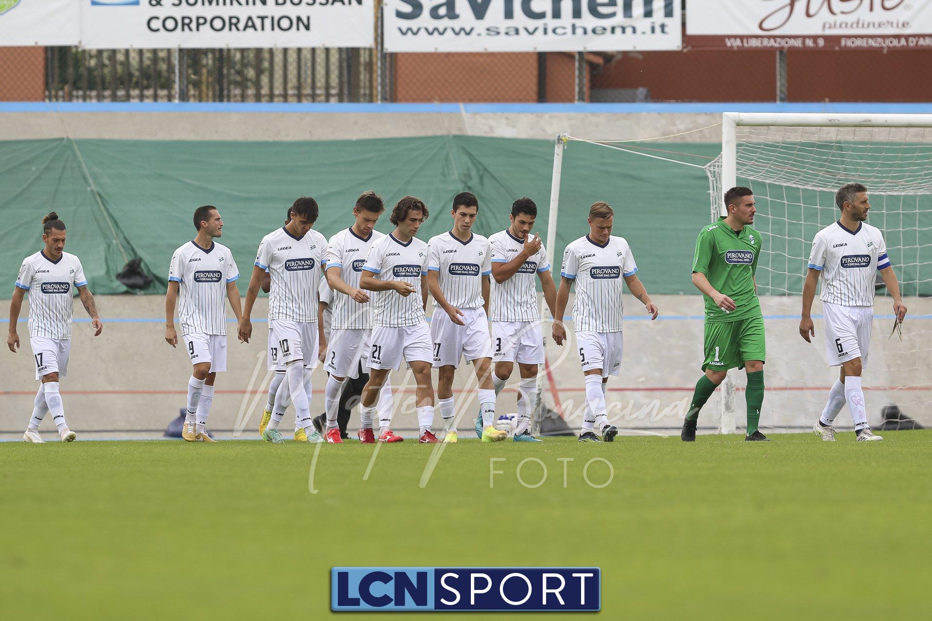 Fiorenzuola (4-3-3): Battaiola; Potop, Ferri, Cavalli, Guglieri (dal 34′ s.t. Dimarco); Currarino (dal 40′ s.t. Godano), Zaccaria, Nelli (dal 17′ s.t. Esposito); Mamona, Oneto (dal 1′ s.t. Tommasini), Bruschi (dal 34′ s.t. Palmieri). (Burigana, Olivera, Maffei, Giani, Arrondini, Danovaro, Varoli). All. Luca Tabbiani.