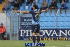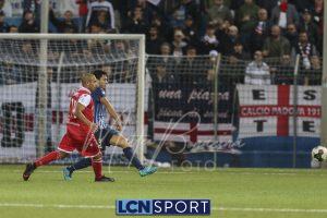 Il Padova reagisce prima con il colpo di testa di Curcio alto, quindi accorciando con il tocco di Ronaldo per l’inserimento perfetto di Saber che infila l’immobile difesa bluceleste e batte Pissardo. Partita riaperta prima dell’intervallo.