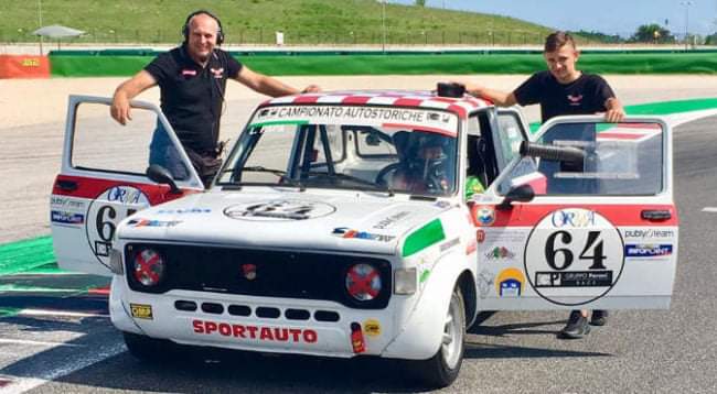 Un trionfo atteso dopo una stagione di successi ma non per questo meno sentito ed emozionante. L’ultimo atto è andato in scena sulla pista del Mugello, con Papa che si è presentato virtualmente già campione con l’inseparabile Fiat 128 1100 cc, preparata dalla Sport Auto di Cassano d’Adda. Quel che contava a norma di regolamento era essere al via, ma la festa ha rischiato di non essere completa perché il driver brianzolo è stato costretto a un frettoloso rientro durante la gara per riparare il filo della frizione. Operazione effettuata in meno di 9 minuti, tanto da permettere a Loris di essere classificato. Non è arrivato il successo in questa occasione, ma è stato come avere vinto di nuovo la classe per Papa e il team.