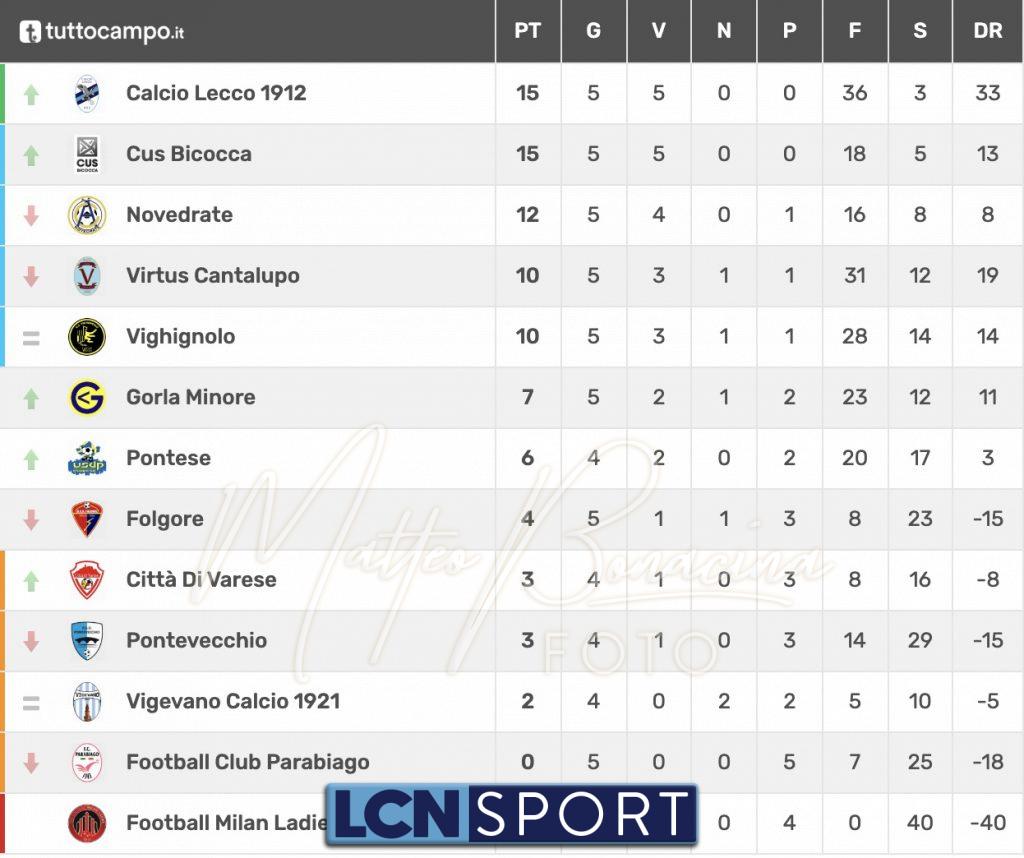 Definirlo percorso netto è riduttivo. La Prima Squadra femminile della Calcio Lecco 1912 demolisce il Pontevecchio, squadra di Milano, e si conferma in vetta al campionato di Promozione, premiata da una differenza reti nettamente migliore rispetto al Cus Bicocca (+33 contro +13). Finisce 16-0 al “Bione”: la squadra guidata da mister Monica Iustoni va a segno con Arianna Bertini (tripletta), Chiara Porcaro (doppietta), Camilla Galbusera, la scatenata Marianna Bruno (sei gol), Gloria Maglia, Giorgia Deriu, Celine Bonini e Alessia Narducci.
