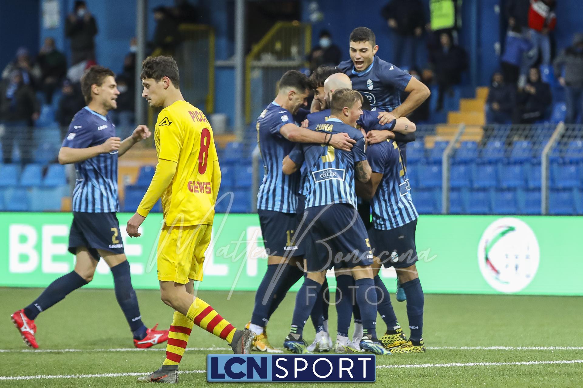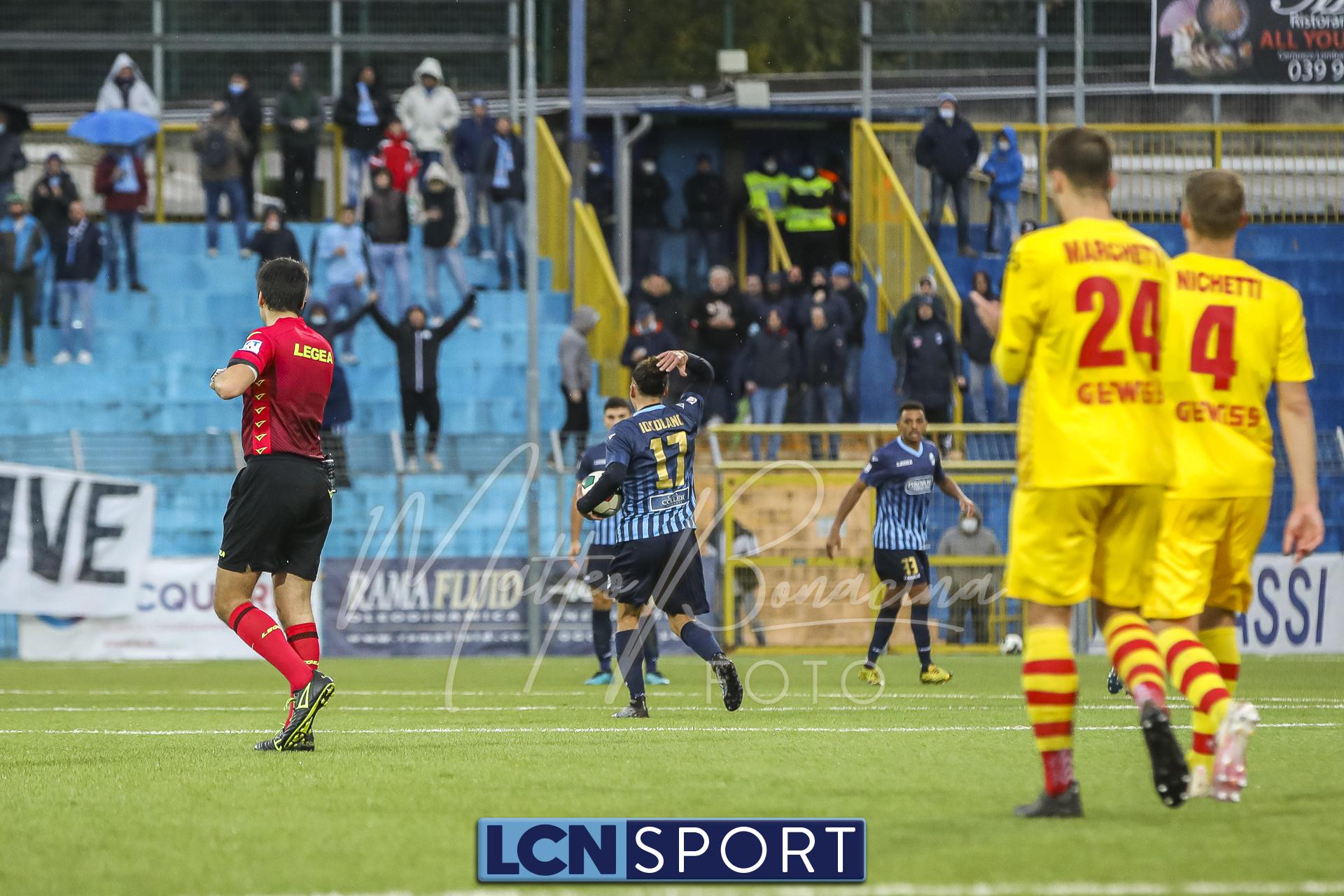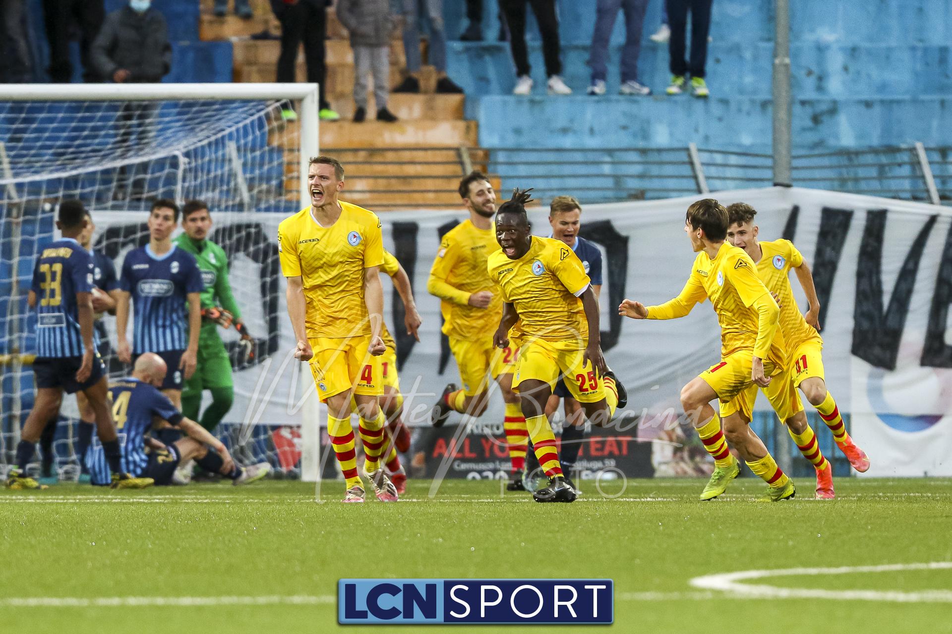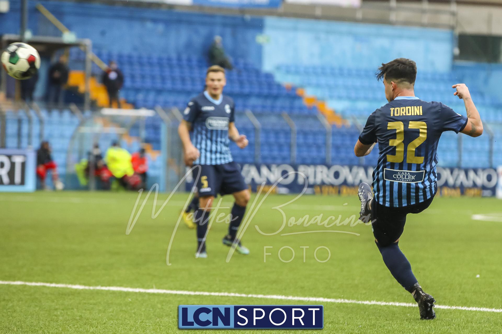 L’episodio che può cambiare la partita al 51′: da destra Masini mette dentro un pallone sporco sui si avventa Petrovic che viene steso: rigore netto. Iocolano dal dischetto è glaciale e pareggia. Passano tre minuti e i blucelesti la ribaltano: Tordini dal limite dell’area finta di calciare a giro e apre a sinistra per l’accorrente Zambataro che salta un uomo e trafigge Rossi con un potente diagonale.