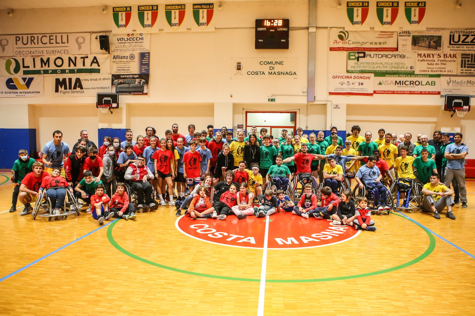 Divisi in quattro squadre (rossi-gialli-verdi-azzurri in base al colore della maglia), gli atleti provenienti da sei società differenti (Basket Costa, Arbedo79, Social Osa, Briantea84, PGC Cantù, Virtus Cermenate) sono scesi in campo per una serie di partitelle che di agonistico non avevano nulla, ma sono state fonte di benessere, per chi giocava e per chi guardava.