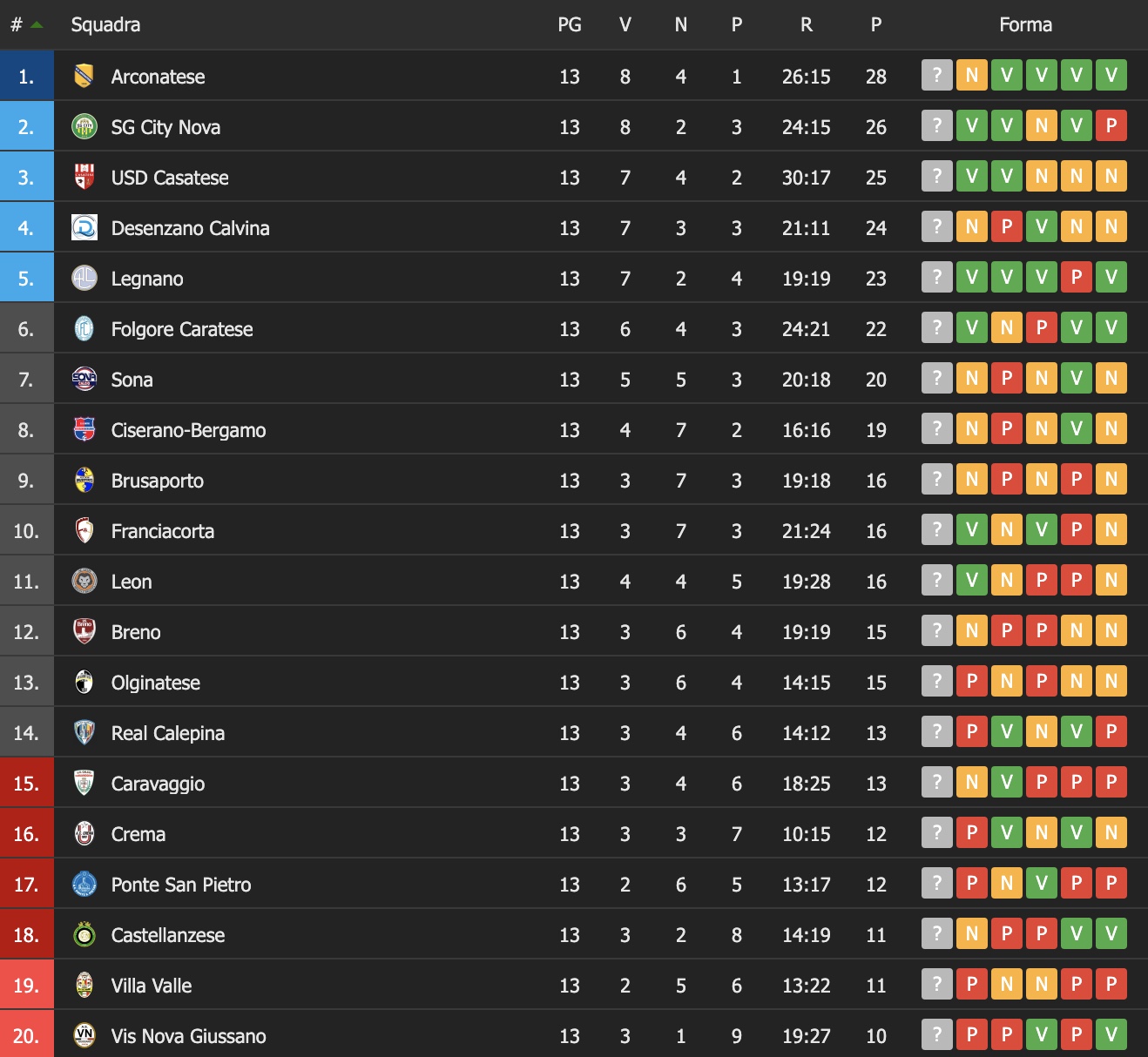 Prova di forza della Casatese tra le mura amiche, ora terza in Serie D. I brianzoli guidati da mister Achille Mazzoleni soffrono per un tempo con il Ponte San Pietro, tanto che Cerini lancia la giovane squadra di mister Giacomo Curioni, dopodiché trovano la via del gol con l’ormai solito guizzo di Masini (12′ st) e aprono mezz’ora di fuoco: segna subito Fusi (17′ st), poi Re Giorgio Recino, subentrato da un minuto a bomber Mattia Isella, si esalta e mette a segno una bella doppietta (23′ e 43′ st) che lo mette al vertice della classifica marcatori con 11 centri stagionali. Rimane solo bella, invece, la Brianza Olginatese, che con il San Giuliano City Nova domina tutto il secondo tempo, ma paga caramente lo spazio lasciato al fantasista ospite Qeros in occasione del gol partita: tiro dal limite, deviazione, Colnago battuto e tre punti in tasca della vice capolista.