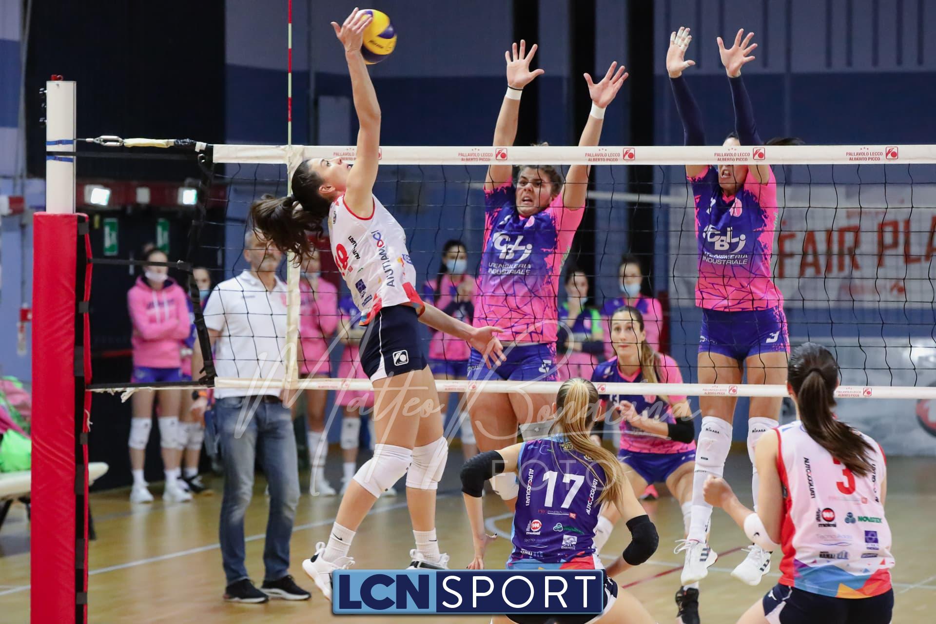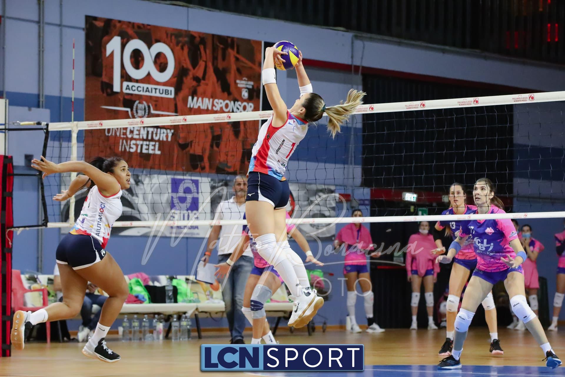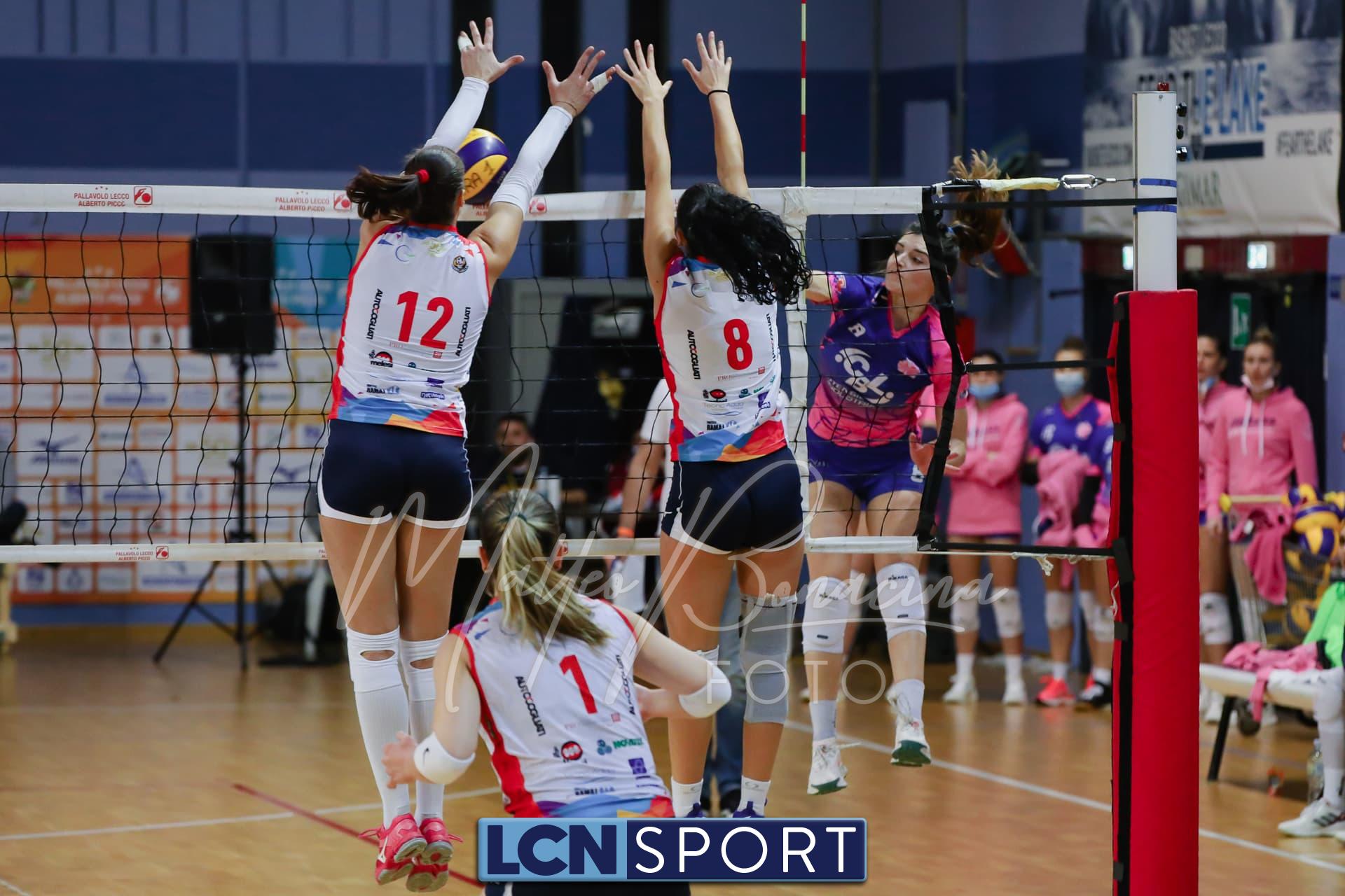 Splendida serata di pallavolo al “Bione” di Lecco. AcciaiTubi Picco Lecco e Cbl Costa Volpino, meritatamente ai primi due posti della graduatoria di Serie B1, se le danno di santa ragione di fronte a una bella cornice di pubblico, con il palazzetto soggetto alle note limitazioni di capienza (50%): esce vincitrice la compagine bergamasca, che ha dimostrato di possedere le giuste malizie in più nei momenti decisivi della partita, eccezion fatta per il primo set. Le biancorosse, per la prima volta a secco durante la stagione, si sono aggiudicate la prima frazione ai vantaggi, ma hanno sprecato con malamente (battuta sbagliata) il set point per conquistare anche il secondo: è stato il momento chiave del match, che ha rilanciato le ambizioni di Cbl, brava ad allungare in maniera decisiva nelle altre due, decisive frazioni di partita e a guadagnare i tre punti che valgono sorpasso e ritorno al primo posto della classifica del girone “B”. Le biancorosse hanno messo insieme 4 battute vincenti, 12 battute sbagliate, 9 muri, anche grazie al buon ingresso in campo di Garzaro, e hanno chiuso con il 67% di ricezione positiva. Serena Zingaro, capitano e a segno con 15 punti, ha chiuso con il titolo di MVPicco.