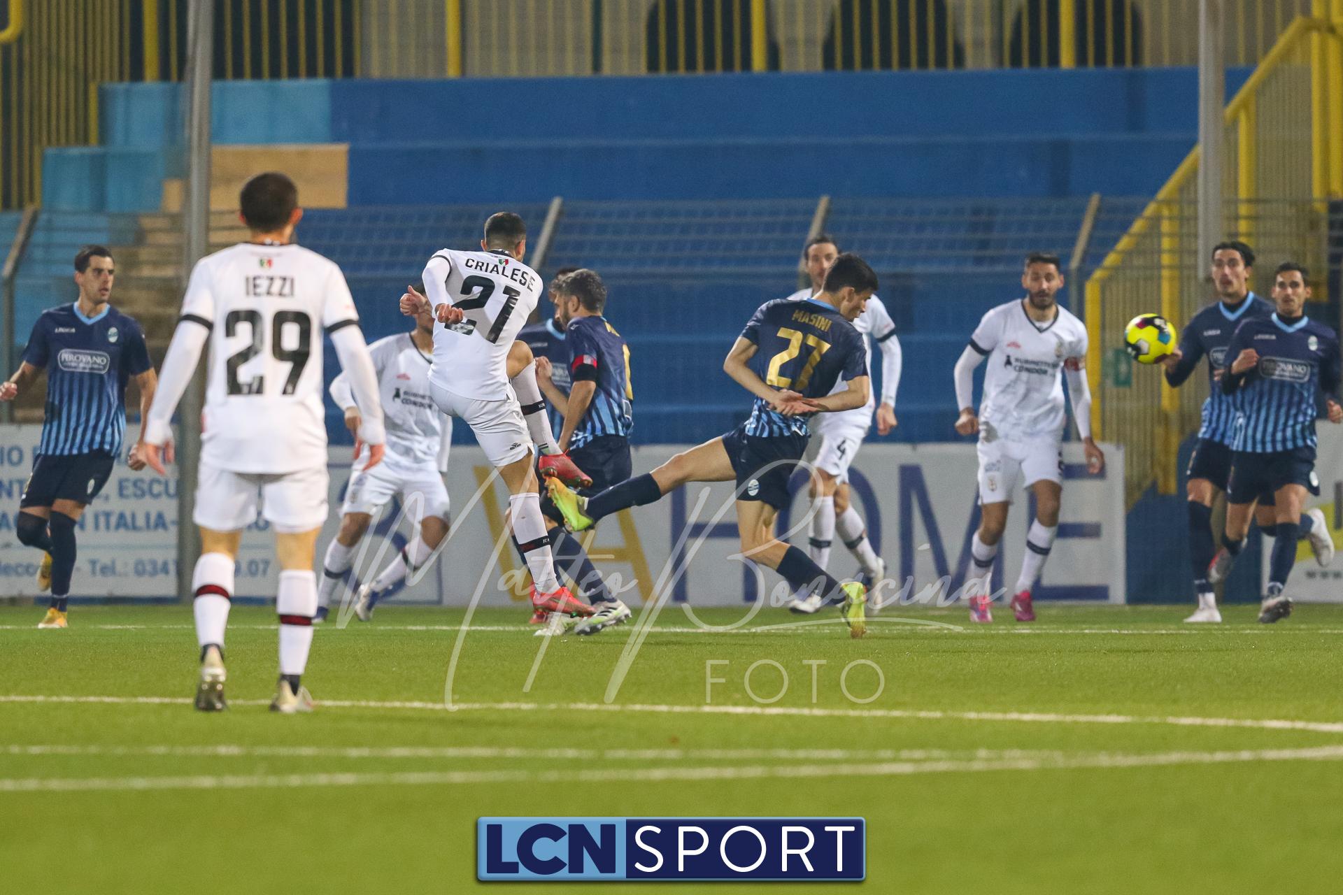 La cronaca. Crialese cerca subito la conclusione dopo un minuto col mancino, fuori di un paio di metri. Ancora Crialese al 5′ di testa da cross di Rolando, poco più che un alleggerimento per Pissardo. Prima conclusione per il Lecco con Petrovic dalla lunga distanza con il destro, doppio intervento di Valentini sul primo palo.