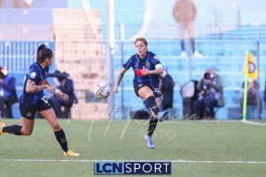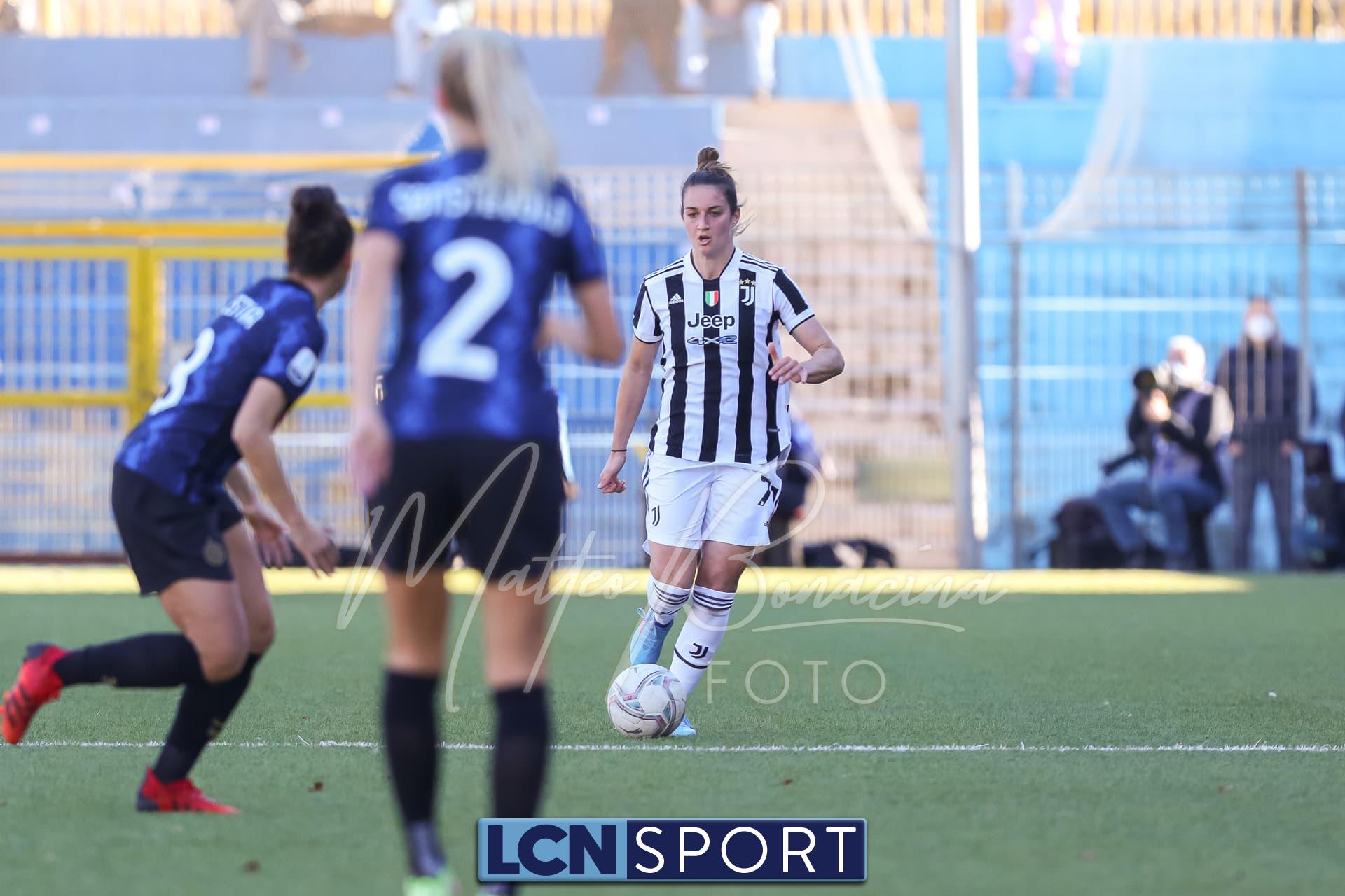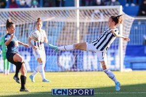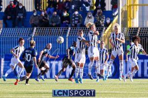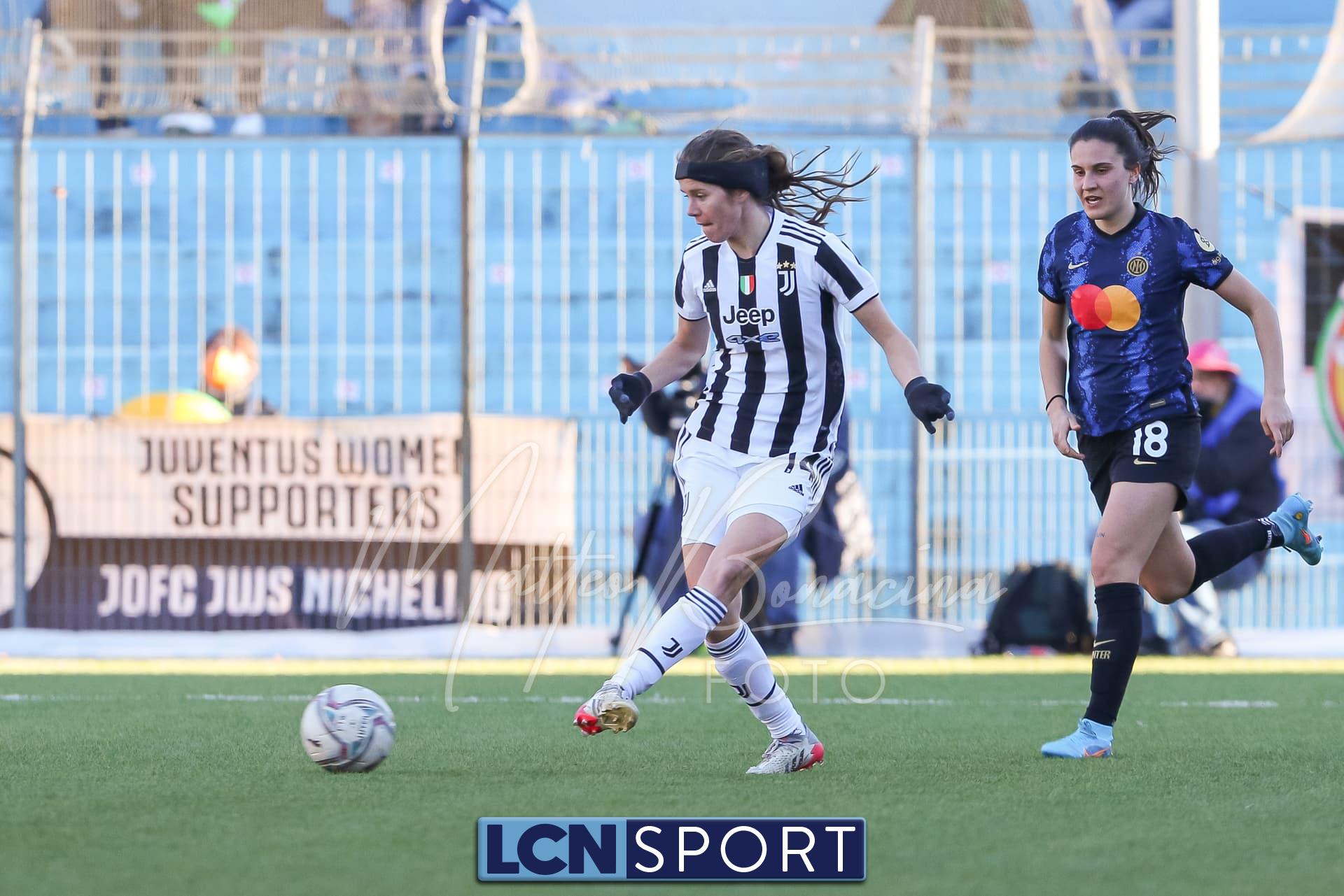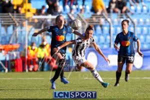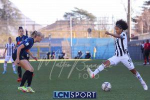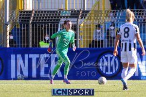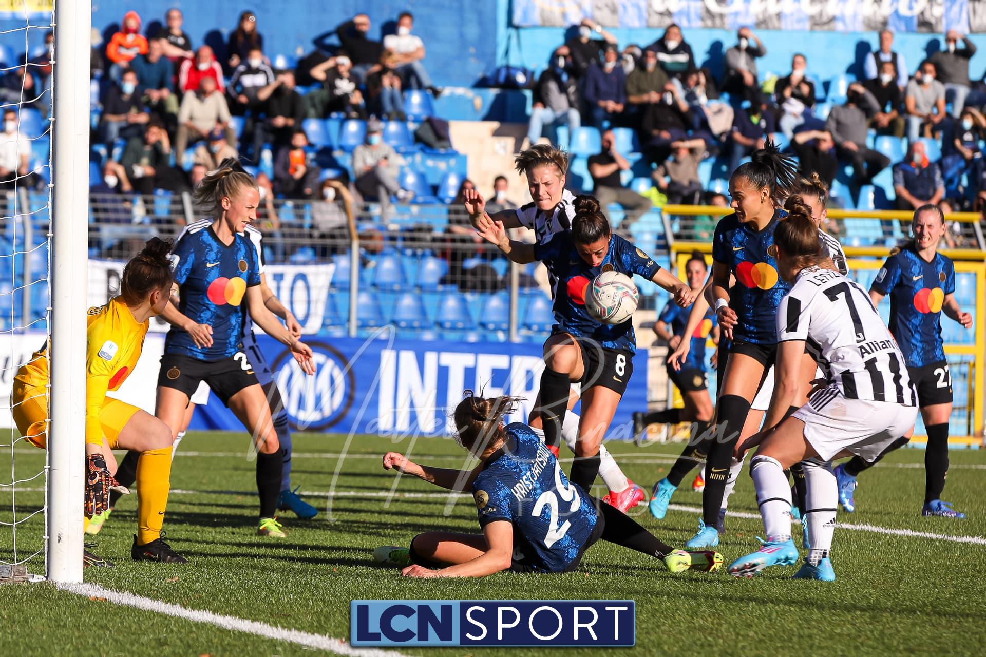A cavallo del 20′ arriva la più grande occasione del primo tempo. Sugli sviluppi di un calcio d’angolo, Staskova prende il tempo a tutte e gira in porta di testa a botta sicura, ma Merlo, appostata sulla linea, respinge. Il classico intervento che, si dice, vale sostanzialmente un gol. La Juve vuole sfruttare l’occasione per mettere ulteriore pressione all’Inter e al 27′ è Lundorf, servita da una bella giocata di Staskova, a sfiorare li vantaggio: il suo destro colpisce il palo esterno. Il resto del primo tempo scivola via tra tanti duelli, con a far eccezione lo spunto di Njoya al 31′. Parata facile per Peyraud-Magnin.
