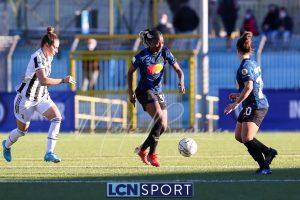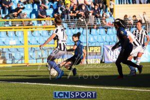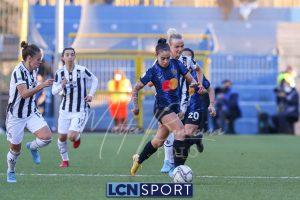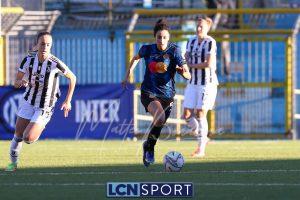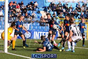 Dagli spogliatoi, dopo l’intervallo, esce un’Inter agguerrita che al 48′ costruisce la più grossa chance della sua gara. Punizione di Bonetti, Kathellen arriva all’appuntamento con il pallone alle spalle di tutte e colpisce la traversa. L’episodio dà coraggio all’Inter, che tiene a distanza la Juve e al 73′ passa in vantaggio. Il gol lo sigla Njoya, servita da Karchounì.