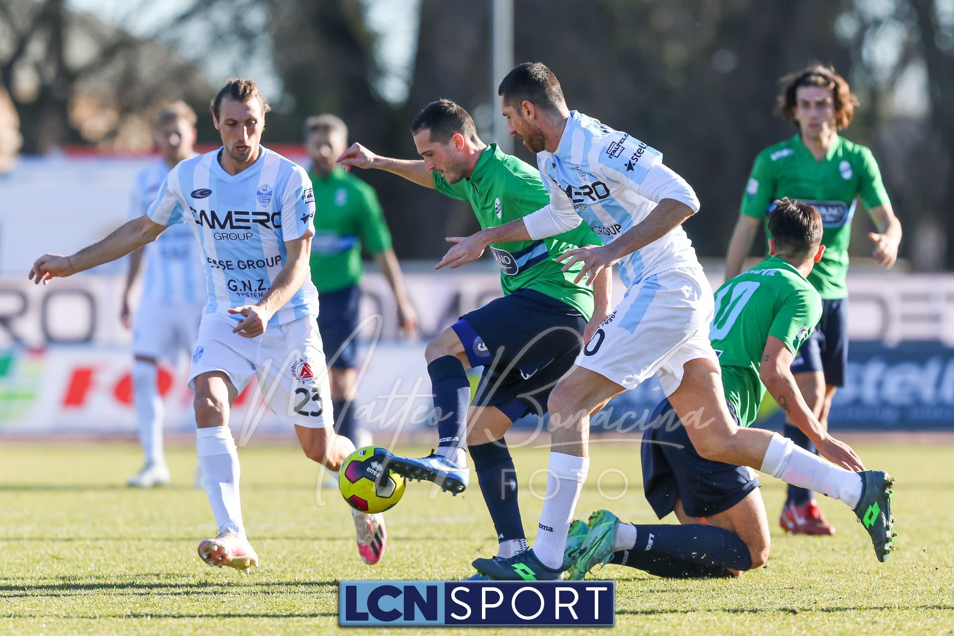 Lecco (4-4-2): Pissardo; Celjak, Merli Sala, Marzorati, Enrici (dal 28′ s.t. Capoferri); Lakti (dal 1′ s.t. Lora), Kraja, Nesta (dal 20′ s.t. Buso); Morosini (dal 1′ s.t. Giudici); Petrovic (dal 6′ s.t. Nepi), Ganz (Libertazzi, Purro, Battistini, Vasic, Sparandeo, Sberna, Italeng). All. De Paola.