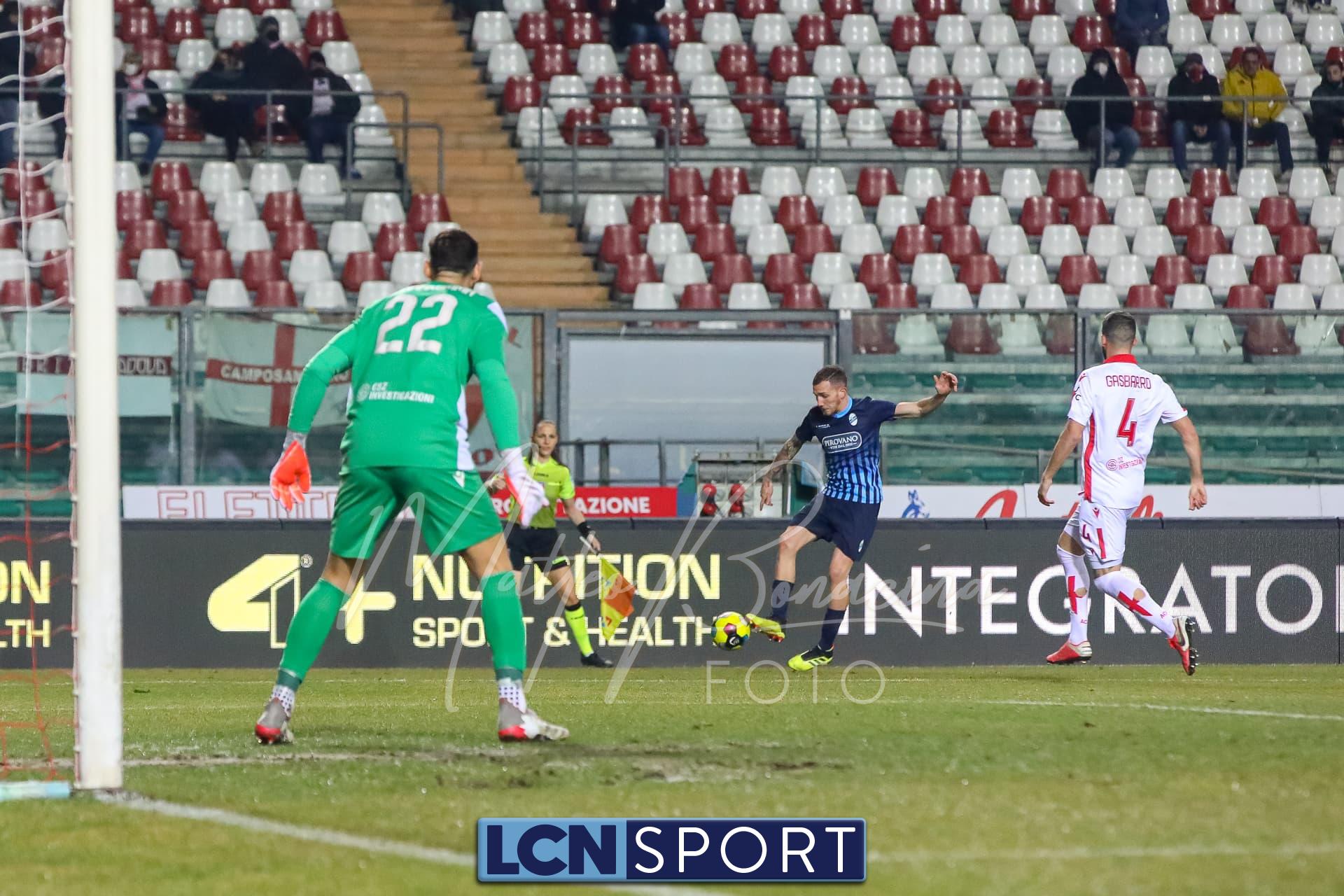 Al 60′ Ceravolo lanciato in verticale prende il tempo ai centrali e calcia, Pissardo, un po’ insicuro, devia in calcio d’angolo.
