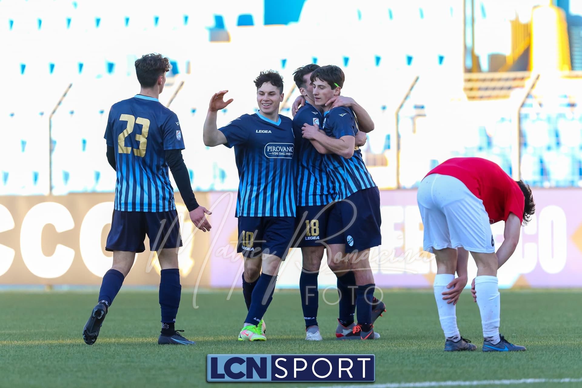 Ne bastava uno, ne sono arrivati tre: la Primavera 3 della Calcio Lecco 1912 è matematicamente qualificata ai play off promozione. I ragazzi di mister Mastrolonardo hanno fatto pienamente il loro dovere, infliggendo un secco 3-0 alla squadra veneta, salendo a 25 punti nel girone A e agganciando il Modena quarto. I padroni di casa passano subito in vantaggio al 10′ con Lorenzi, che corregge in porta un batti e ribatti nel cuore dell’area. La prima frazione termina in controllo dei blucelesti che colgono una traversa clamorosa con Berra. Nel secondo tempo Bonacina sfrutta un regalone di Maimahai e raddoppia a porta vuota, nel finale tocca a Berra intercettare un passaggio del portiere ospite e trasformarlo in un pallonetto dalla trequarti. Altra grande prova dei ragazzi blucelesti, che mantengono l’ottimo stato di forma, l’imbattibilità interna, si portano a -2 dal Padova terzo e a -3 dalla Feralpisalò seconda: due le giornate per provare la rimonta.