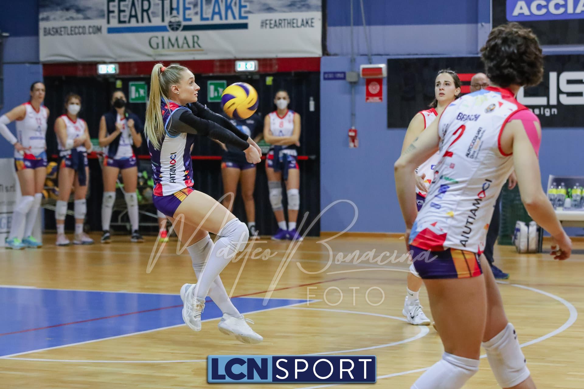 Non la versione migliore, ma una egualmente vincente. La seconda partita consecutiva disputata al “Bione” vale un altro 3-0 all’AcciaiTubi Pallavolo Lecco Alberto Picco, che impone la propria legge anche alla Green Up Bedizzole, ultima a zero punti in classifica, e prosegue il proprio inseguimento alla vetta difesa dalla Chromavis Abo Offanengo. La giovane squadra ospite non ha sfigurato sul parquet lecchese, covando anche più di un pensiero legato alla conquista di un set; nelle fasi decisive della partita, però, l’ampio divario tecnico ha prevalso in maniera netta, regalando alle biancorosse una vittoria tutto sommato agevole. Chiusura con 7 aces, 7 battute sbagliate, 9 muri completti, il 50% in attacco e il 42% di ricezione positiva. Mercoledì sera, nel recupero con l’ostica Don Colleoni di Trescore Balneario, ci sarà la concreta possibilità di operare il sorpasso in cima alla graduatoria.