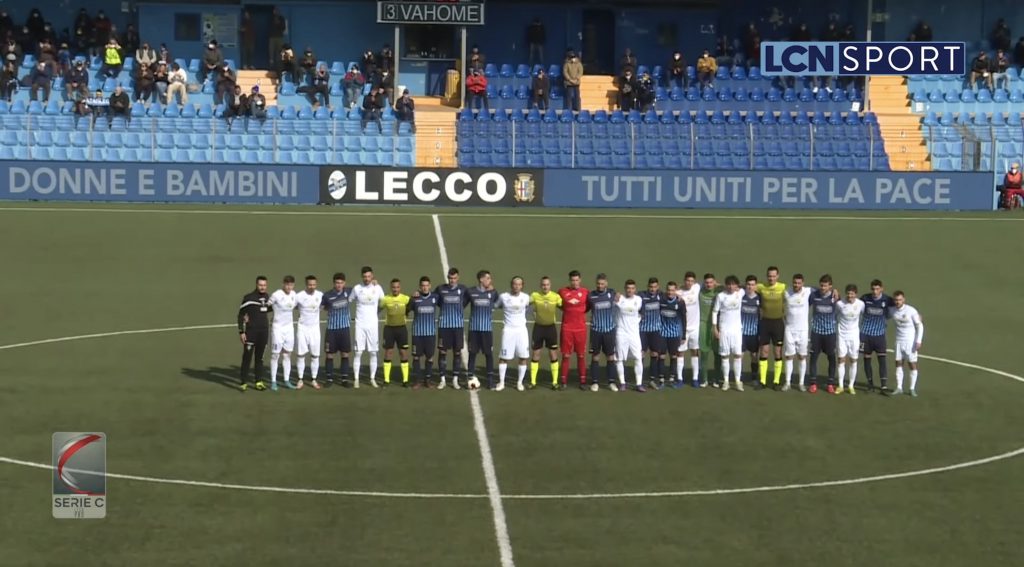 In occasione del match di campionato Lecco-Pergolettese di domenica 6 marzo 2022, le due squadre si sono schierate insieme prima del fischio d’inizio unendosi per condannare la guerra e mandare un messaggio di pace forte e chiaro “Uomini, donne e bambini tutti uniti per la pace” come apparso sui pannelli Led prima, durante e dopo la partenza della gara.