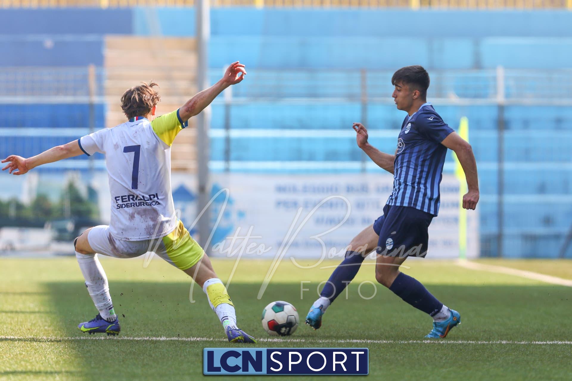 Nulla di fatto tra Lecco e FeralpiSalò. Al “Rigamonti-Ceppi” le squadre se le danno di santa ragione, sportivamente parlando, all’interno di una gara convulsa che vive anche dell’indecisione perenne del signor Francesco Burlando di Genova, arbitro di una partita che, come da previsioni, vive per 90′ sul filo del rasoio. Lascia di stucco che parliamo di un fischietto esperto, diversamente dal solito, incrociato dalla Prima Squadra di recente a Renate. Alla fine la finale di play off del girone l’apre Loris Armati, il più lesto di tutti a infilare in fondo al sacco un calcio d’angolo battuto dalla destra, mettendo l’accento su un primo tempo letteralmente dominato dai Leoni del Garda nonostante una traversa del tutto casuale colpita dai padroni di casa. La squadra di mister Roberto Mastrolonardo, privo dei titolarissimi Berra e Grieco, soffre e sbuffa, ma a inizio ripresa l’ottimo Alessandro Lanotte, classe 2005 promosso dall’Under 17, viene steso in area e si guadagna un rigore un po’ generoso che Antonio Reda, preso in prestito dalla Prima Squadra, spedisce alle spalle di Bassi. Poi, giusto un paio di minuti dopo, proprio il portiere ospite stende lo stesso Lanotte, ma Burlando fischia un precedente fallo del numero 11 su Zanini che, però, vede solo lui. C’è spazio per altre due occasioni non concretizzate da Reda nel giro di cinque minuti, poi la FeralpiSalò risale la china e son pericoli veri.