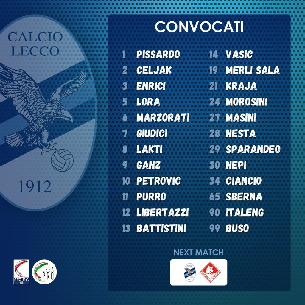 Verso Lecco-Piacenza: i convocati di mister Luciano De Paola