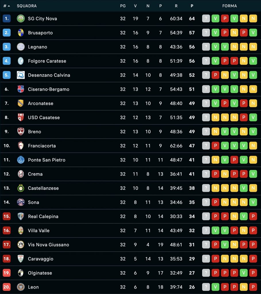 Altro turno amaro per le lecchesi impegnate in Serie D. Nell’anticipo di sabato la Brianza Olginatese di mister Simone Boldini ha detto la propria sul campo della capolista San Giuliano City Nova, ma lo scontro con la capolista ha mostrato le ovvie fragilità di una compagine, quella bianconera, relegata al penultimo posto della classifica. Nonostante una buona gara, con tanto di palo preso da Momentè all’alba di un primo tempo arrembante, alla lunga i milanesi hanno fatto valere il maggior tasso tecnico: al 18′ della ripresa il redivivo Mbarick Fall, ereditato dal NibionnOggiono che fu, scatta in contropiede e dal limite dell’area scarica un bolide alle spalle di Colnago; in pieno recupero è invece Pedone a girare in porta con una bella volée dal limite dell’area. Nulla di fatto anche per la Casatese di mister Achille Mazzoleni, bloccata da un Ponte San Pietro in forma e lanciato verso la salvezza diretta: ne esce un pareggio a reti bianche che Ferrara deve contribuire a mantenere con un grande intervento costruito nel finale di gara, ma che non muove nella maniera sperata la classifica dei biancorossi.