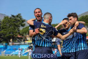 Reazione bluceleste al 70′ da calcio d’angolo, Battistini va a saltare e non trova la porta di poco. All’80’, dopo la girandola di cambi, Purro offre una bella palla a Vasic che da buona posizione calcia alto. Contropiede Seregno all’85’, diagonale di Gomes fuori di un niente. Finisce 1-1, l’ultima giornata vivrà la volata a tre fra Lecco, Triestina e Pro Vercelli per il quinto posto.