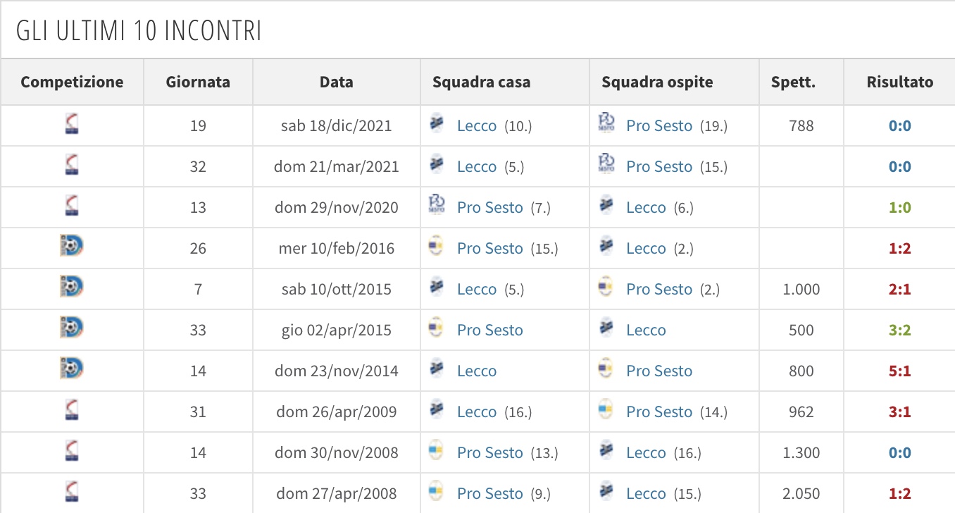 Oggi, rispetto ad allora, la forbice in classifica è aumentata a livello esponenziale. I blucelesti inseguono la quinta posizione in classifica, mentre i milanesi sono alla ricerca dell’ultimo punto per mettere al sicuro la quartultima piazza della graduatoria, che darebbe diritto a uno scontro play out favorito dalla miglior classifica rispetto al Seregno terzultimo. In casa solo il Legnago ha fatto peggio dei biancazzurri, 13 punti in 18 partite e un preoccupante -10 alla voce differenza reti al “Breda; il Lecco, comunque, non va oltre una quindicesima piazza per quanto riguarda il rendimento esterno: 18 punti in altrettante partite, con la vittoria che manca dal 27 febbraio (2-3 a Renate). Sulla carta, quindi, è uno di quegli incontri che ‘puzzano’ di pareggio, ma un punto potrebbe servire poco o nulla alla causa lecchese nella corsa con Triestina e Pro Vercelli.