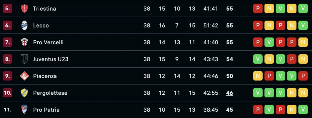 - Lecco (6^)-Juventus U23 (8^) o Piacenza (9^)
