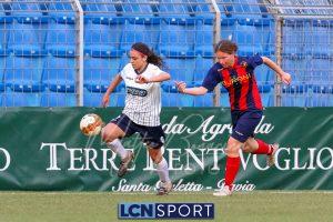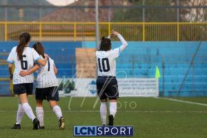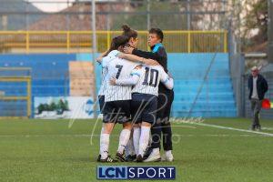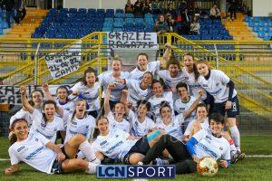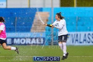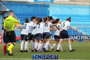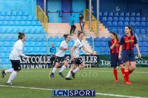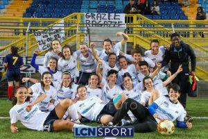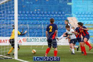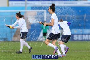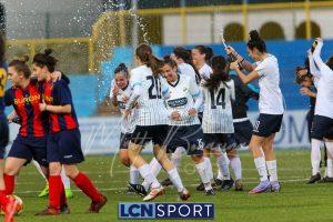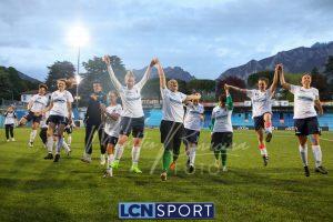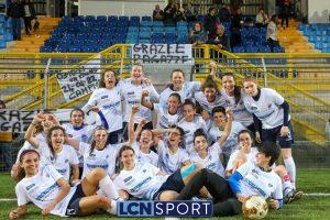 Serata di gloria per la Prima Squadra femminile della Calcio Lecco 1912. Le ragazze guidate da mister Monica Iustoni si sono imposte nettamente (5-0) sulla Folgore Pavia grazie a un grandissimo secondo tempo e hanno staccato il pass per la promozione in Eccellenza con due giornate d’anticipo: all’appello mancano i recuperi con Pontese e Vigevano, ma le blucelesti sono scappate a +9 dal Cus Bicocca e, pertanto, sono diventate irraggiungibili. Stagione straordinaria per le Aquile rosa, che hanno vinto 19 partite su 22 grazie a 153 gol fatti, con tanto di vittoria per 35-0 disseminata sul percorso, soli 12 subiti e la miseria di un incontro perso. L’acuto decisivo ha portato le firme di Bruno, Magni, Bonini (doppietta) e Galbusera, che hanno spaccato in due la partita dopo un primo tempo finito 0-0 a causa della poca precisione sottoporta da parte del Lecco. Al triplice fischio del direttore di gara Matteo Buzzella sono letteralmente saltati i tappi delle bottiglie portate a bordocampo, con tanto di doccia per la stessa Iustoni prima delle foto celebrative.