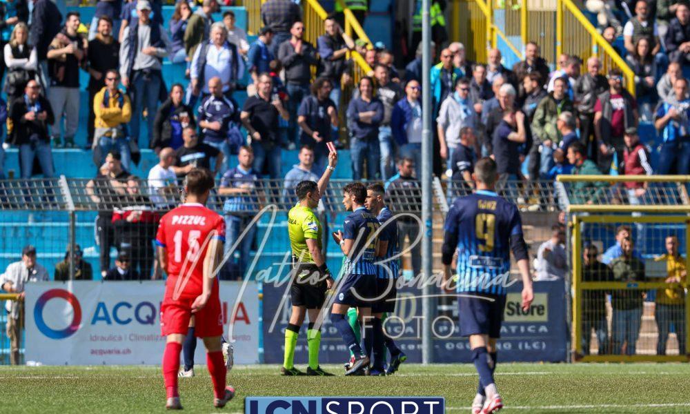 Ospiti sanzionati per l’invasione di campo operata da un proprio tifoso al termine della partita. Logico stop per i due blucelesti espulsi durante il match dall’arbitro Acanfora