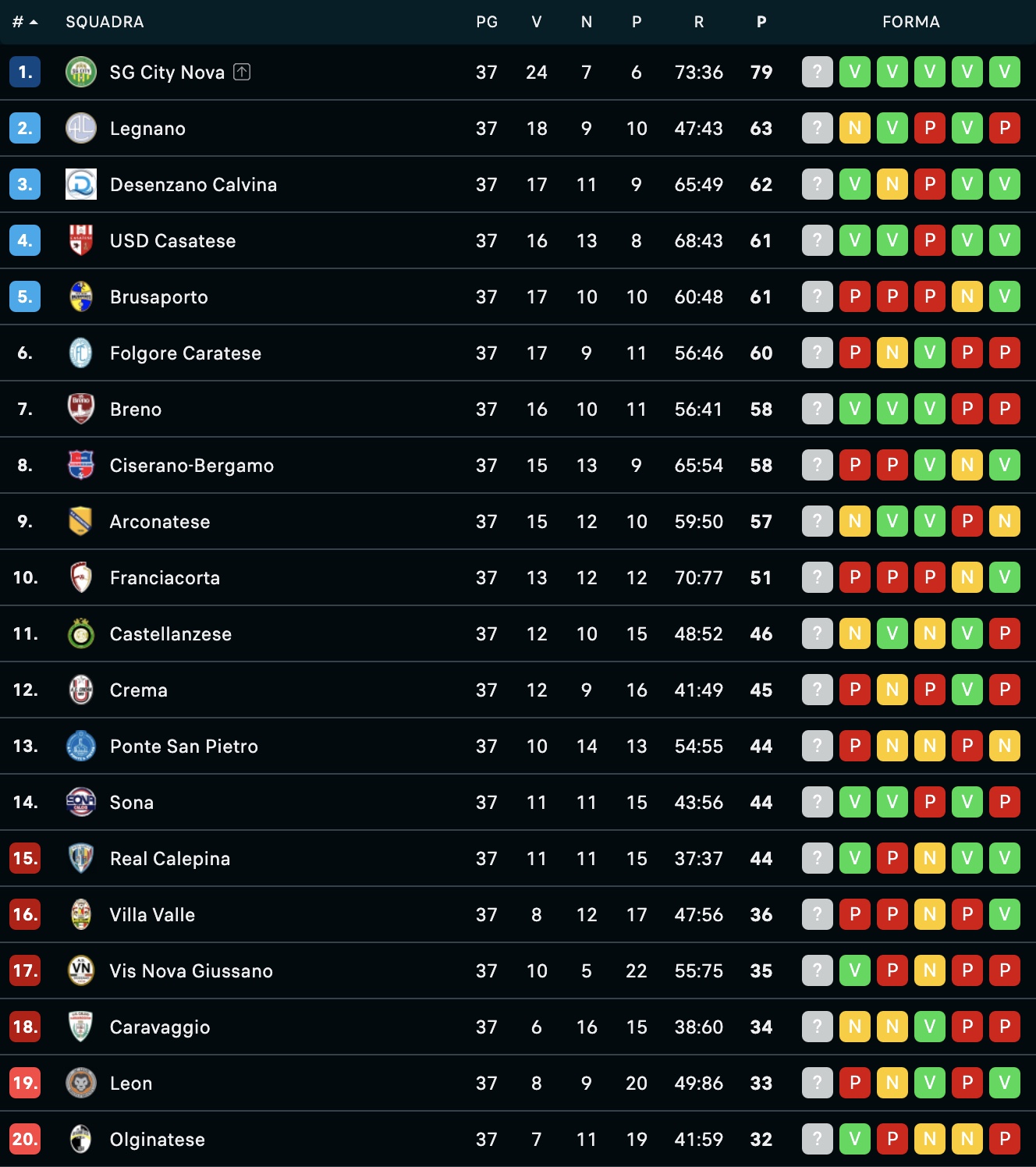 I risultati del 37° turno