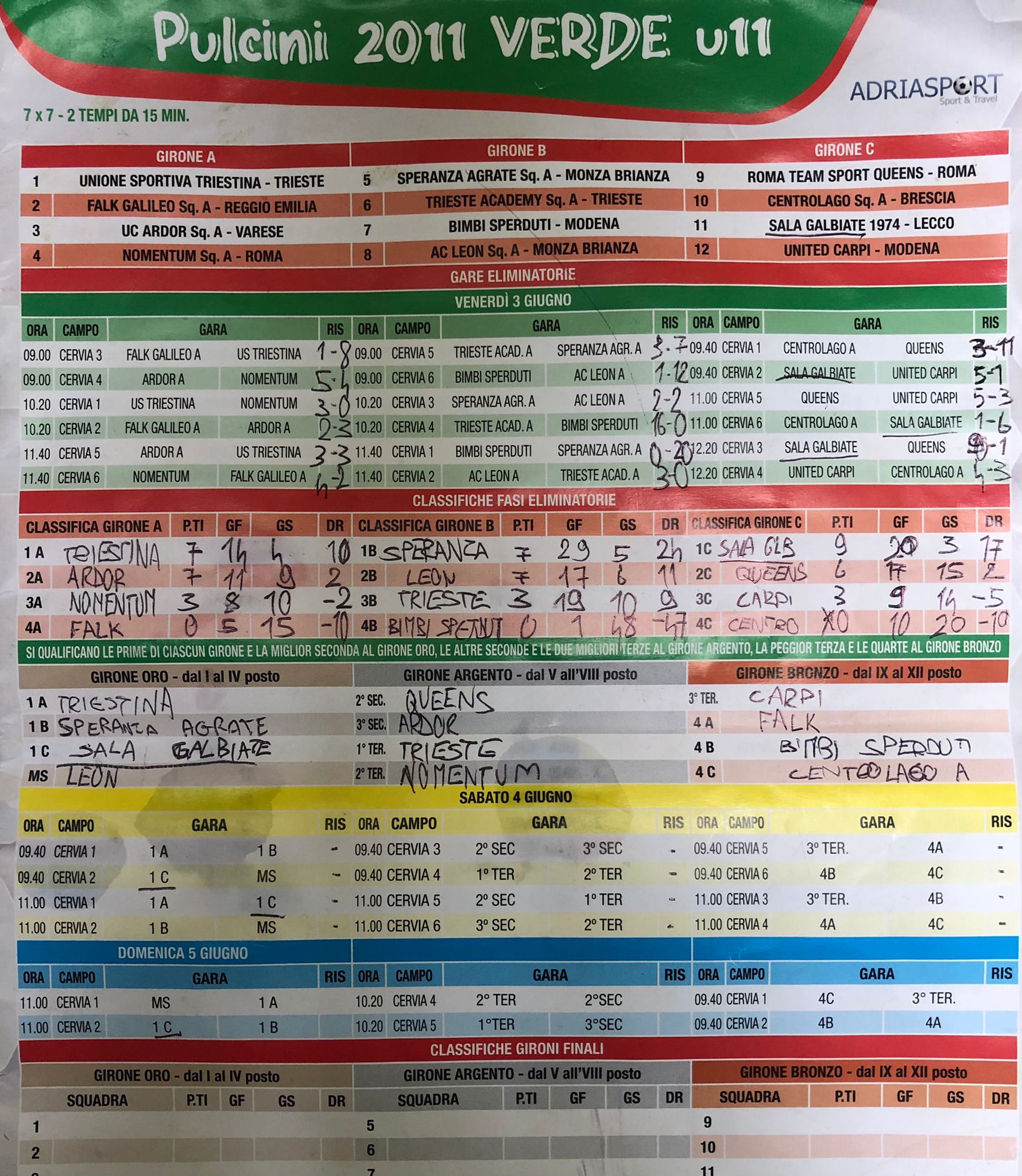 Bella esperienza per i Pulcini 2011 del Sala Galbiate 1974. Al termine della prima giornata del Trofeo Romagna Cup 2022 in corso tra Cervia e Cesenatico, i giovanissimi atleti lecchesi si sono qualificati al primo posto nel loro girone, lanciandosi con grande speranze verso la seconda fase. I galbiatesi guidati da Francesco Castelnuovo e Samuele Panzeri hanno battuto 5-1 lo United Carpi, confermandosi vittoriosi (9-1) anche con il Queens e con il Centrolago A (1-6), mettendo in tasca tutti e nove i punti a disposizione, unica compagine a riuscirci. Sabato sono in programma le gare con Triestina e Leon, domenica lo scontro con la Speranza Agrate e la stilazione della classifica finale del girone “Oro”.