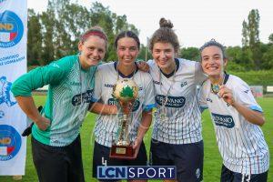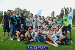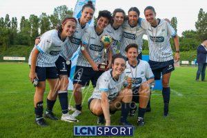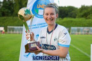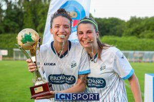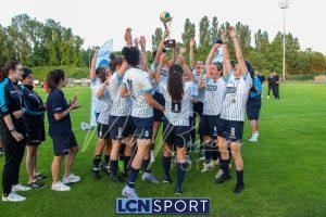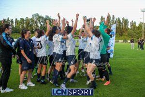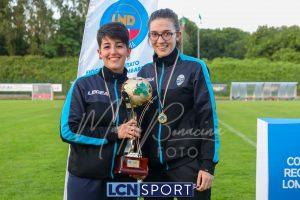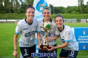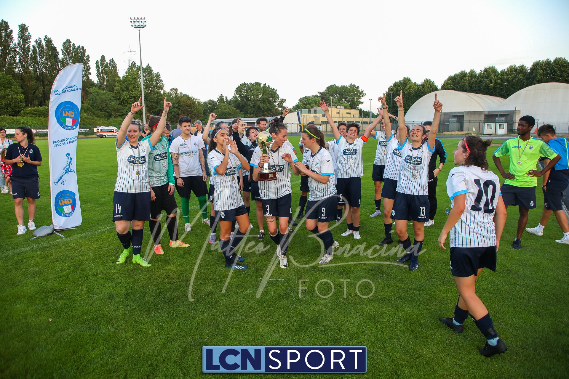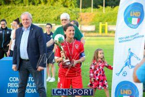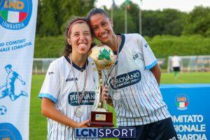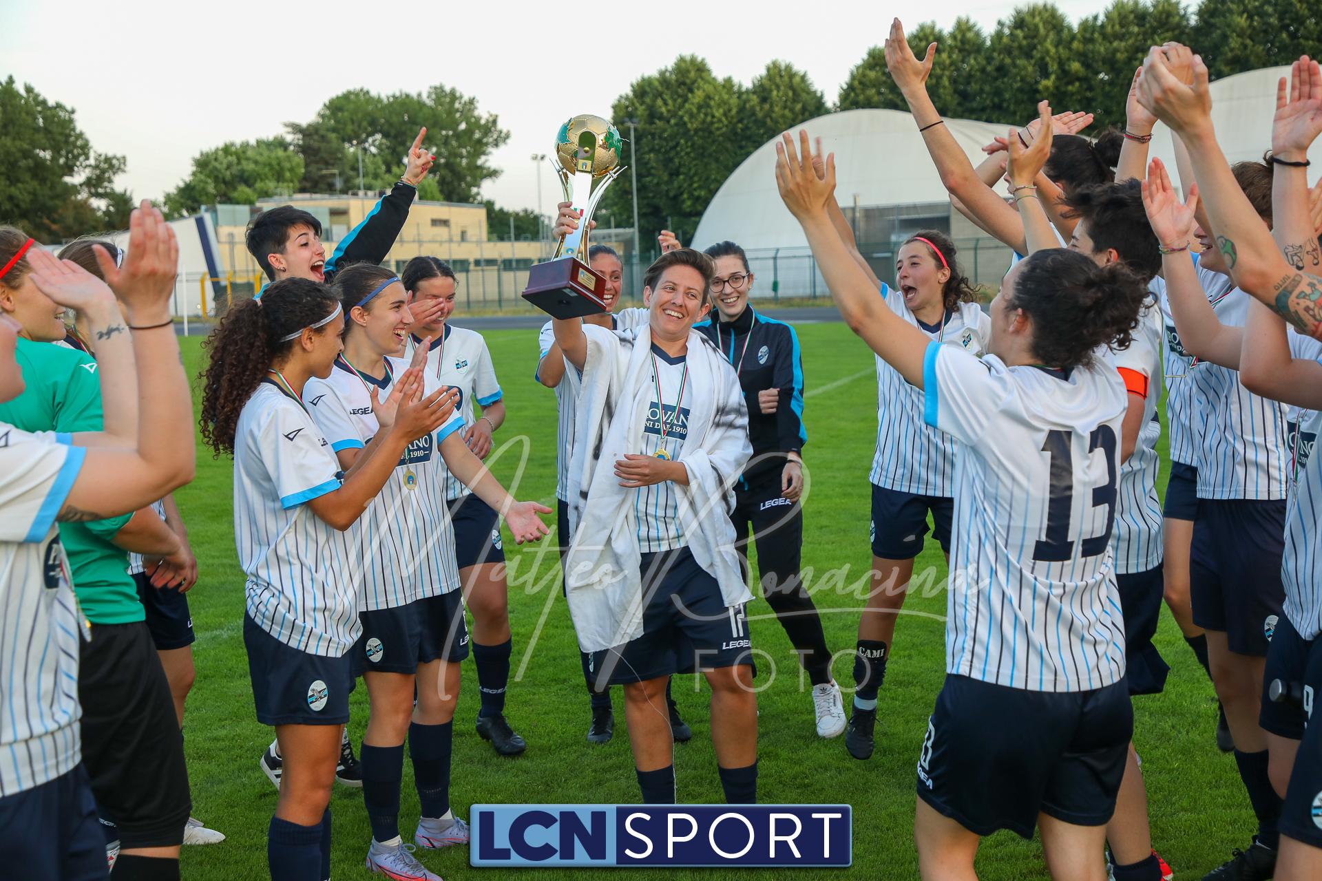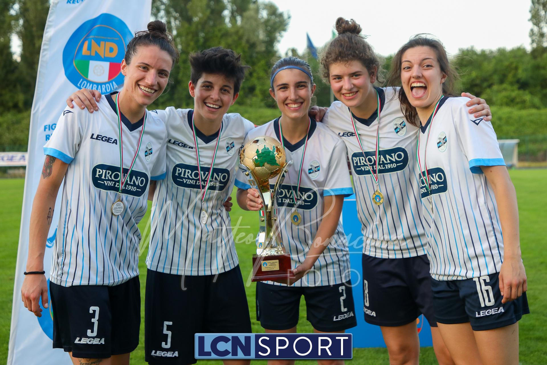 Super Lecco al “Città di Meda”. La Prima squadra femminile conquista anche la Coppa Lombardia di Promozione e completa la doppietta, facendo così il bis con il campionato stravinto qualche settimana fa. Le ragazze di mister Monica Iustoni fanno vedere tutto il proprio potenziale, schiantando nuovamente il Città di Varese, già battuto nella fase ai gironi, nella finalissima del trofeo regionale. Il finale non lascia spazio a interpretazioni: 7-1, arrivato nonostante l’iniziale vantaggio conquistato dalle biancorosse; una partenza con il freno a mano che non ha impedito alle Aquile di far valere il proprio tasso tecnico, cresciuto ulteriormente nella fase finale dopo l’entrata in campo della senatrice Serena Galli. Felicità anche per il vicepresidente Gino Di Nunno, che ha fatto i propri complimenti alle blucelesti e ha poi fatto intervenire telefonicamente il patron Paolo Leonardo Di Nunno, che ha ribadito la soddisfazione per il secondo trofeo stagionale conquistato.