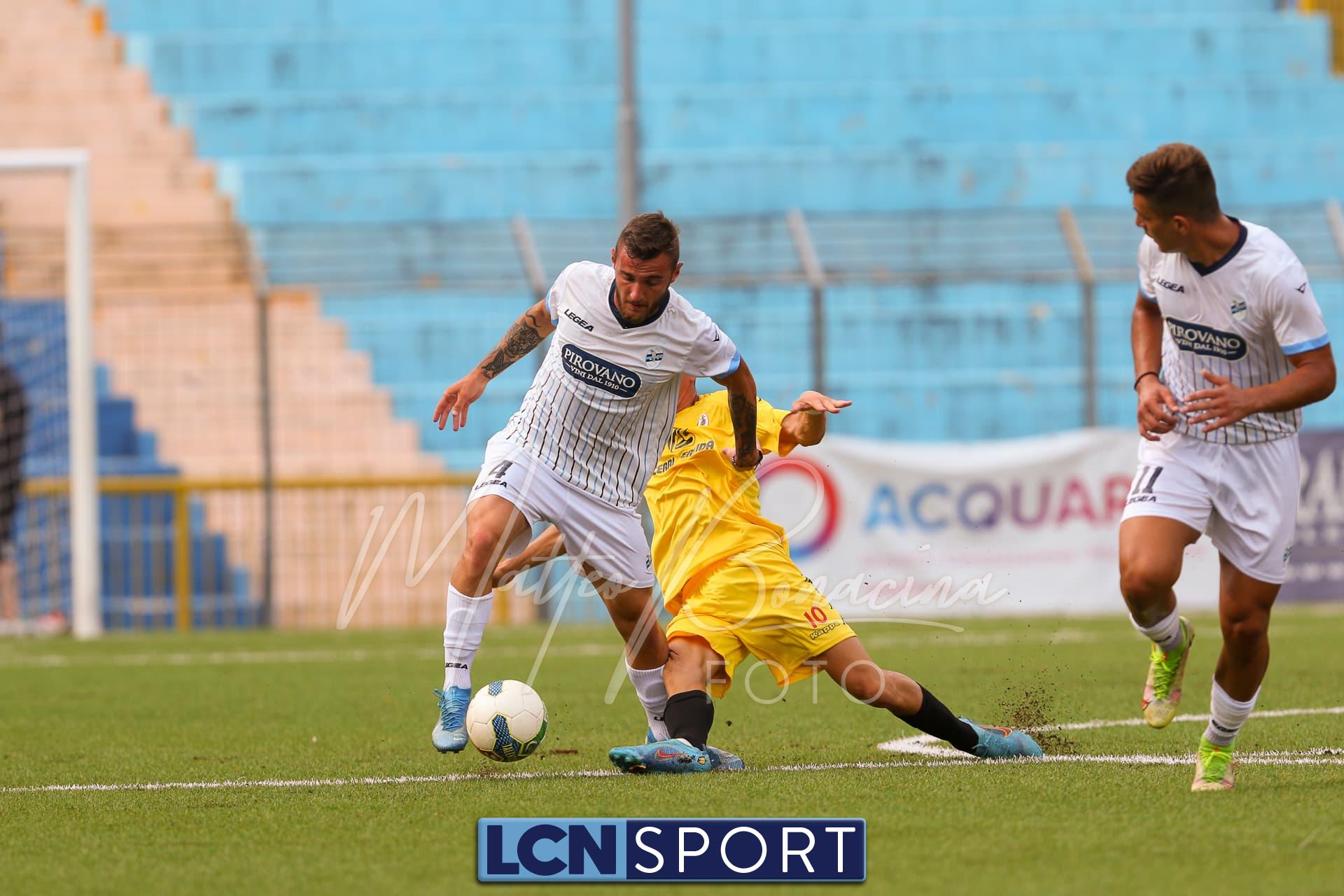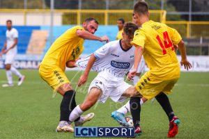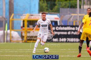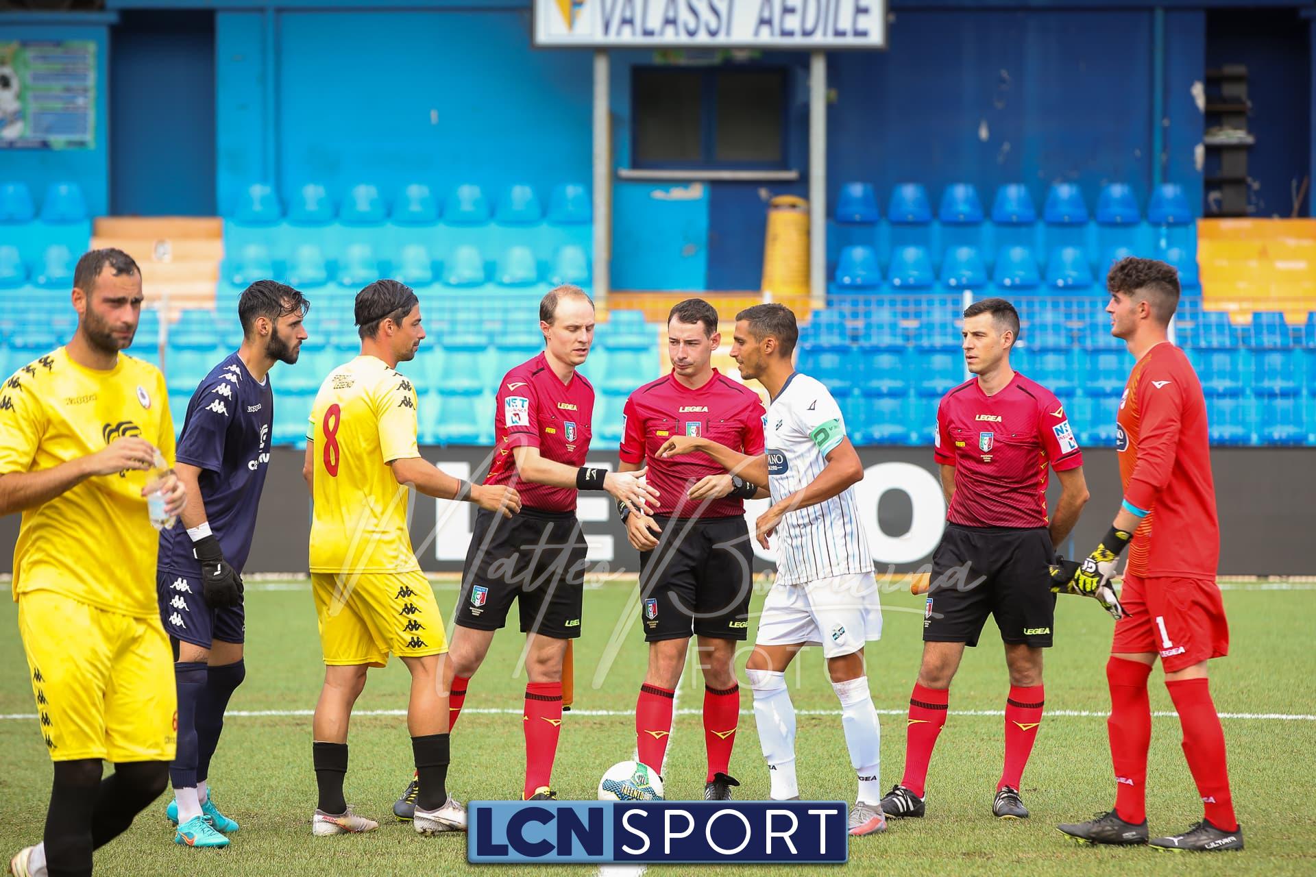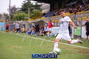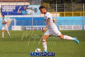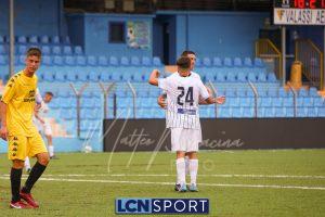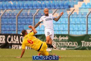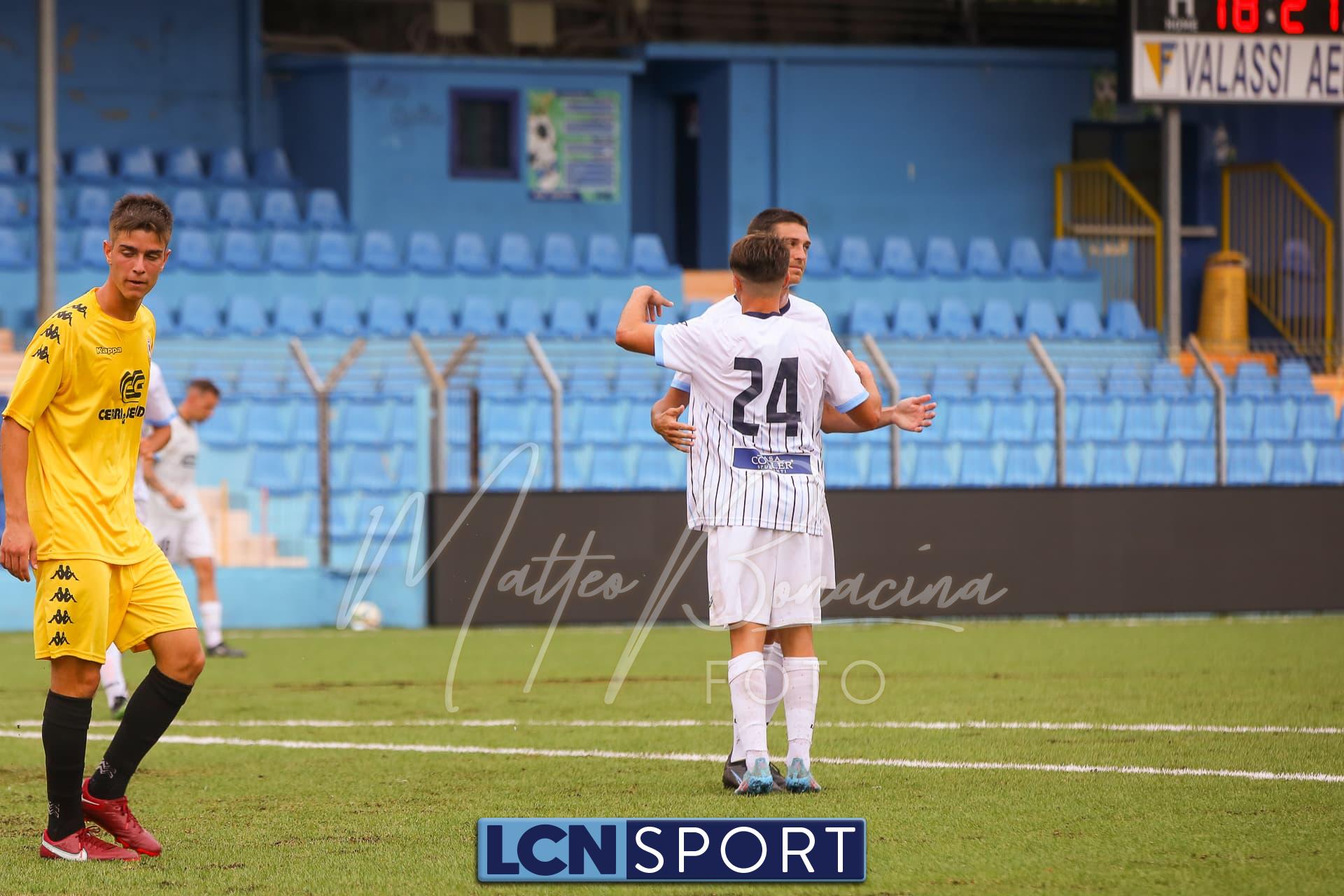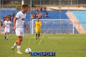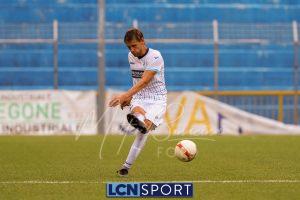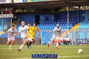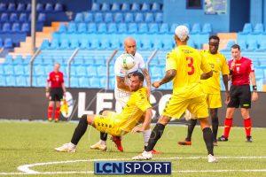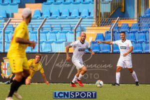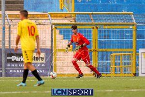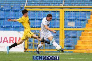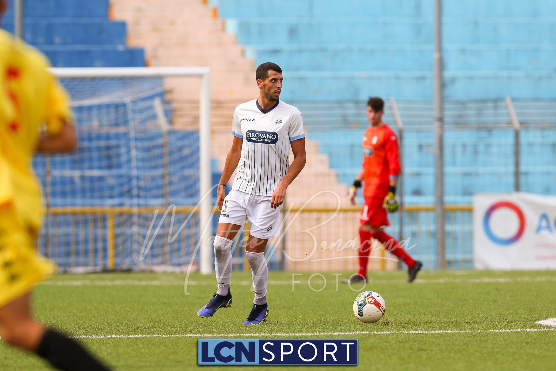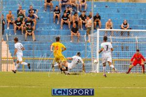 Al 3′ Buso scappa sulla destra e calcia forte sotto la traversa, ma Ferrara para bene; quattro minuti dopo, però, il portiere ospite non può nulla sul rigore conquistato e trasformato dallo stesso “9” bluceleste, schierato a fianco dell’interessante Longo nel 3-5-2 iniziale. Segue una fase di stanca che dura fino al 32′, quando il Sant’Angelo si crea una buona chance che Battistini sventa, mentre al 38′ è Longo a calciare fuori, in diagonale, lanciato a tu per tu con Ferrara. Minuto 43′: Purro in diagonale con il sinistro, Ferrara si esalta. Al 45′ Bugno s’invola nella zona centrale in contropiede, ma Enrici sporca la sua conclusione dal limite.