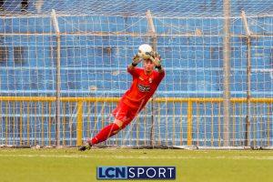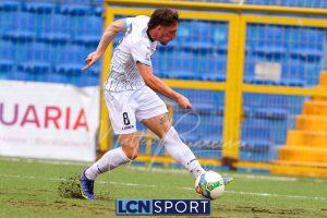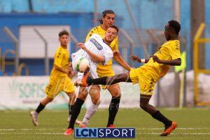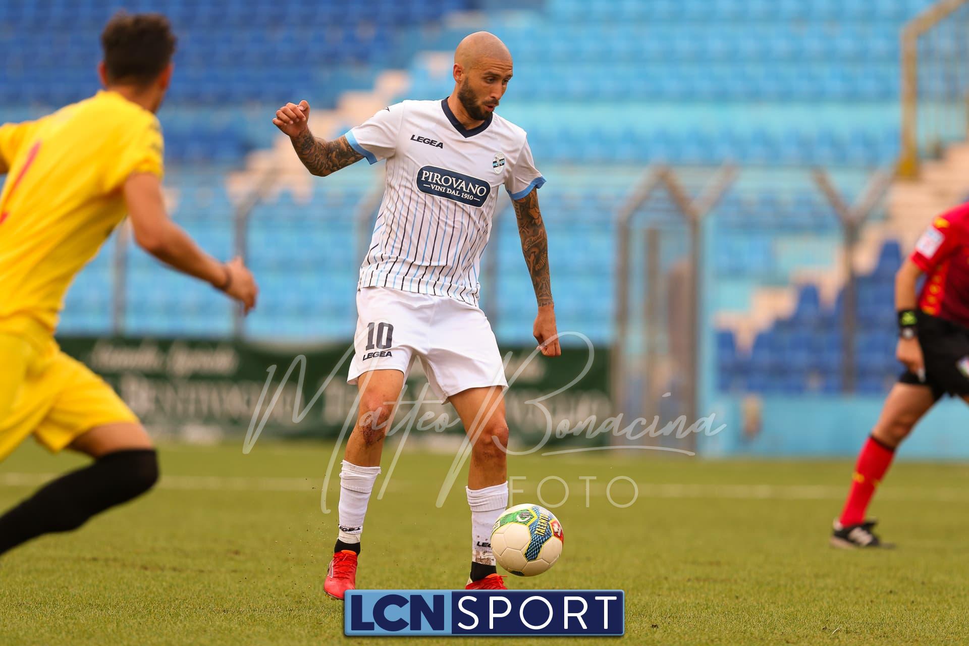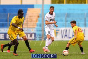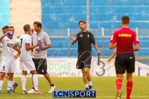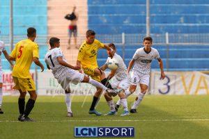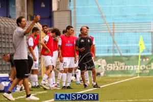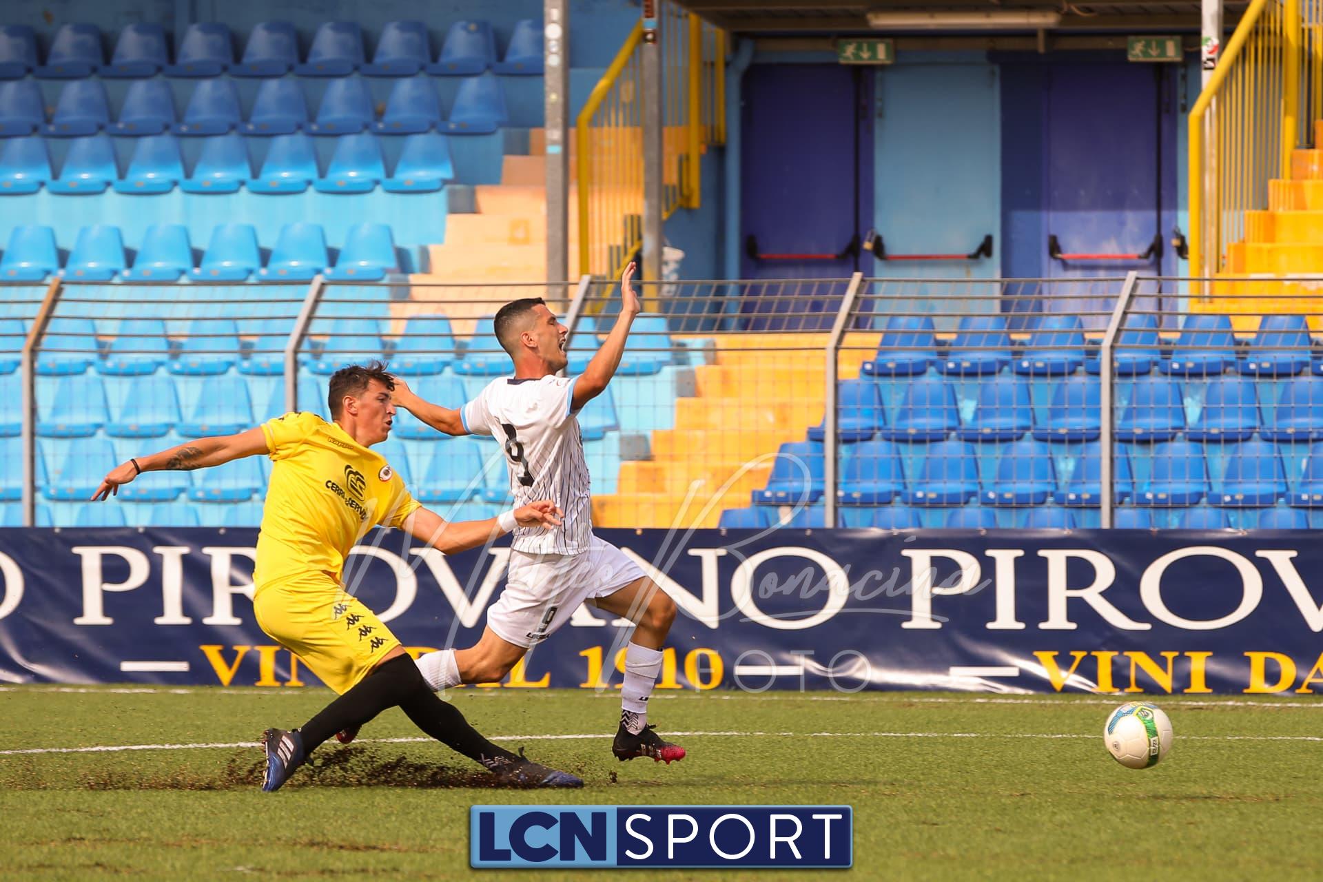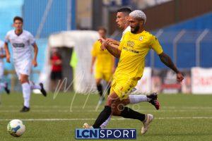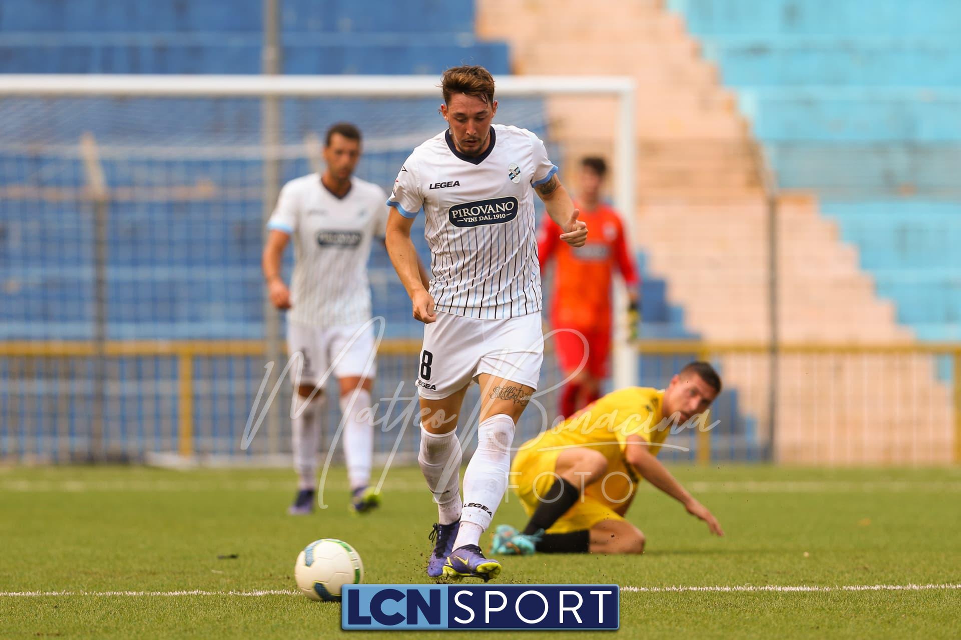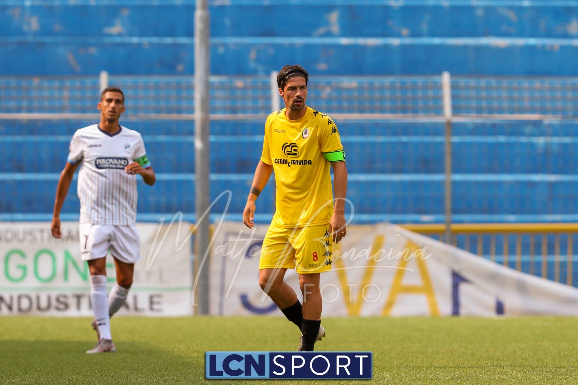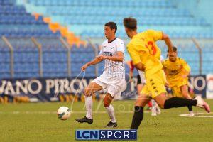 Al 3′ Buso scappa sulla destra e calcia forte sotto la traversa, ma Ferrara para bene; quattro minuti dopo, però, il portiere ospite non può nulla sul rigore conquistato e trasformato dallo stesso “9” bluceleste, schierato a fianco dell’interessante Longo nel 3-5-2 iniziale. Segue una fase di stanca che dura fino al 32′, quando il Sant’Angelo si crea una buona chance che Battistini sventa, mentre al 38′ è Longo a calciare fuori, in diagonale, lanciato a tu per tu con Ferrara. Minuto 43′: Purro in diagonale con il sinistro, Ferrara si esalta. Al 45′ Bugno s’invola nella zona centrale in contropiede, ma Enrici sporca la sua conclusione dal limite.