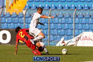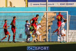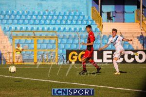 All’8’ Maldonado calcia bene dalla distanza, ma trova subito pronto per la respinta Guarino, poi al 14′ il regista bluceleste coglie una clamorosa traversa dal limite dell’area con uno splendido arcobaleno tracciato con il piede destro. Al 20’ Girelli e Giudici sfondano a destra, cross a tutto campo per Buso che colpisce al volo e prende il palo esterno dalla sinistra. Al 22’ schema Giudici-Lepore da calcio d’angolo, con il secondo che calcia in bello stile e mette fuori di poco. Al 23’ Zambataro sfonda a sinistra e mette al centro per Celjak, nelle inedite vesti di difensore centrale nella linea a quattro, che non trova la porta con il sinistro dal limite dell’area piccola. Al 30’ rigore per il Lecco in seguito a un atterramento di Pinzauti: calcia Maldonado a incrociare, ma Guarino si supera e mette in angolo. Al 42’ cross di Zambataro, stacca Celjak sul secondo palo e centra la traversa da distanza molto ravvicinata.
