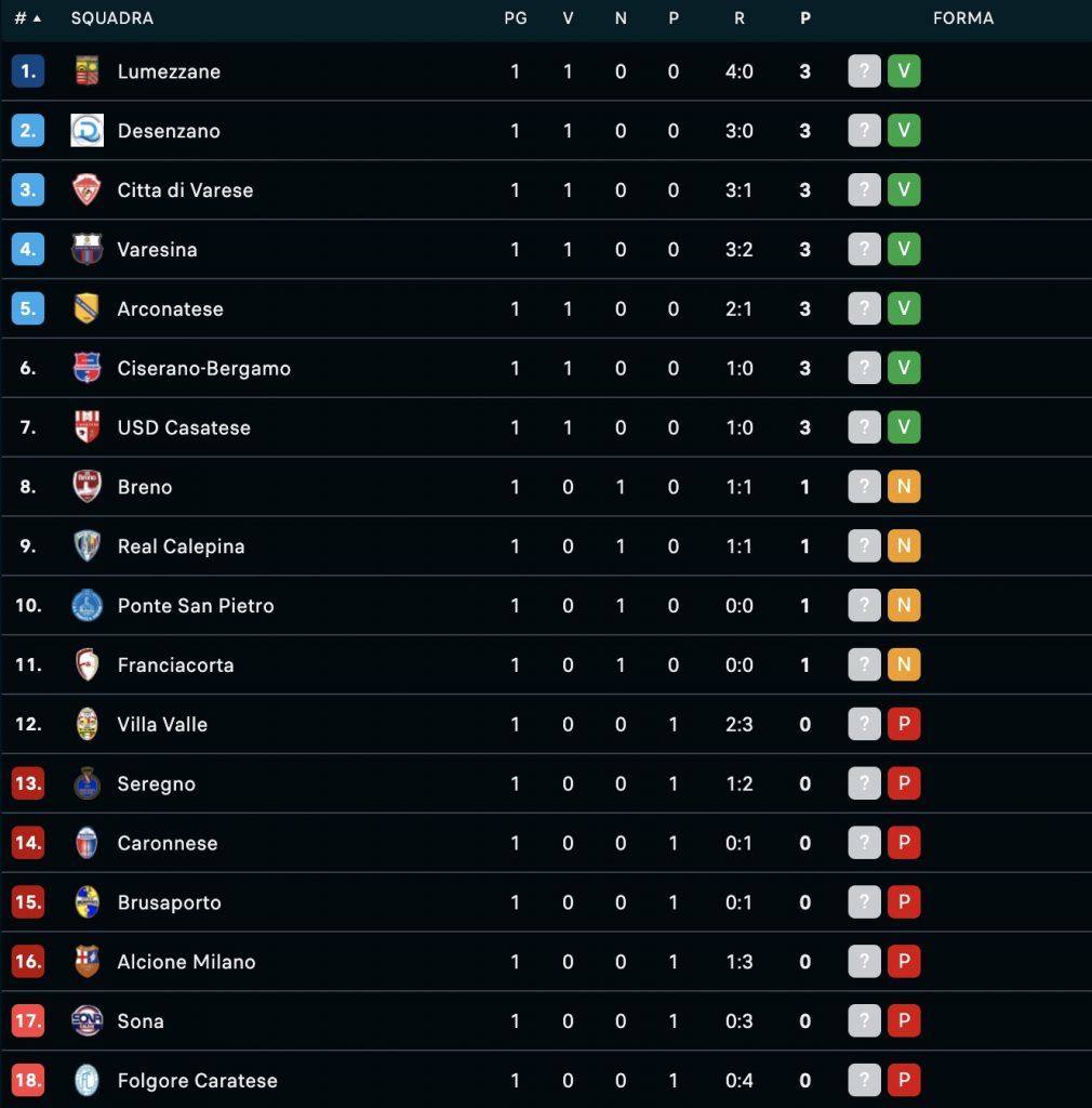 La Casatese vola subito sulle ali dei suoi senatori. A un quarto d’ora dalla fine Comberiati recupera palla, serve Isella che trova Pontiggia in area per la stoccata che vale i primi tre punti della stagione sul campo del Brusaporto. Successo meritato per la squadra di mister Giuseppe Commisso, che timbra l’avvio della nuova avventura con il canovaccio visto durante le annate di Nibionno: difesa solida e ripartenze ficcanti, in grado di produrre occasioni e il gol annullato a Stefanoni durante la prima frazione di gioco. Domenica i biancorossi se la vedranno con l’Arconatese, compagine in grado di farsi subito notare grazie al 2-1 inferto al Seregno, tra le favorite per la vittoria finale.