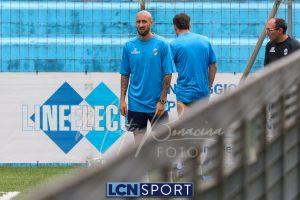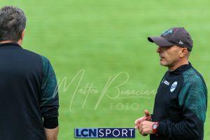 Il primo Lecco di mister Luciano Foschi si mostra al “Rigamonti-Ceppi”. Il nuovo tecnico bluceleste, ufficialmente in carica dopo tre giorni di lavoro già andati in archivio, ha preso il posto di mister Alessio Tacchinardi nel corso della mattinata di domenica e sta preparando la sfida di sabato pomeriggio (14.30) con il Mantova. Il tecnico di Albano Laziale ha schierato i blucelesti con il 3-5-2 nei due tempi disputati contro la Primavera di mister Roberto Mastrolonardo, mischiando le carte tra potenziali titolari e coloro che finora hanno rappresentato le seconde linee. A segno Mattia Sangalli nel corso del primo tempo con una bella volée in mischia e Pinzauti nel corso della ripresa anche grazie a una precisa sponda di Eusepi. Buona la gamba di Giorgio Galli, che dà l’impressione di potersi candidare per, finalmente, far rientro in campo dopo il lunghissimo stop iniziato a gennaio a causa della rottura del legamento crociato avvenuta sul campo della FeralpiSalò. Lavoro personalizzato per Doudou Mangni, Carlo Ilari, Ermes Purro e Mattia Tordini. Buone impressioni anche per quanto riguarda la seconda squadra bluceleste, che sabato debutterà sul campo del temibile Südtirol.