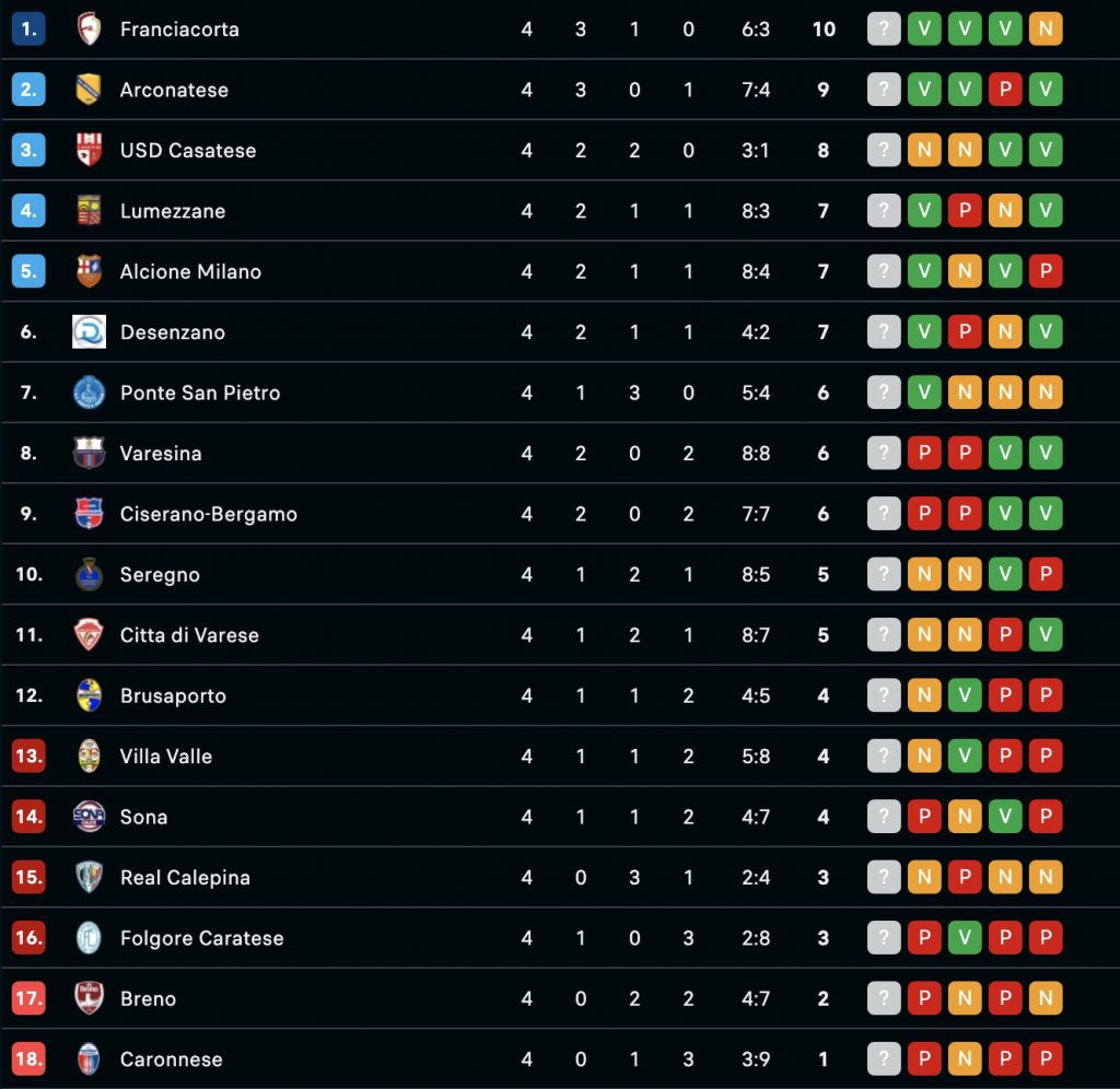 Secondo pareggio consecutivo per la Casatese di mister Joey Commisso. La compagine brianzola ha disputato il turno infrasettimanale che ha riguardato tutto il quarto turno, spostato rispetto al canonico posizionamento nel fine settimana. I padroni di casa hanno ricevuto a Casatenovo il Città di Varese, ambiziosa e attrezzata squadra che, però, sta facendo fatica a ingranare in questo inizio di campionato di Serie D. Quattro risultato utile consecutivo per la squadra del patron Gianni Sassella, che rimane una delle poche imbattute con la corazzata Franciacorta e il Ponte San Pietro: nonostante il risultato finale le due squadre in campo non si sono risparmiate, costruendo varie occasioni per parte, la cui concretizzazione è mancata per merito dei rispettivi reparti difensivi o per la scarsa vena realizzativa. Ora la Casatese, tornata negli spogliatoi con qualche rammarico, è attesa dalla trasferta sul campo della Folgore Caratese terzultima in classifica, in difficoltà con soli tre punti conquistati ma in grado di fare una bella figura sul campo della capolista.
