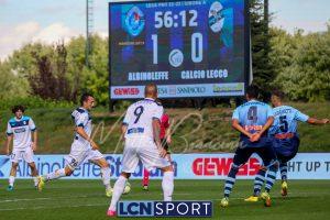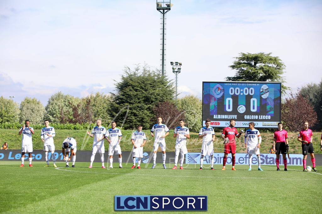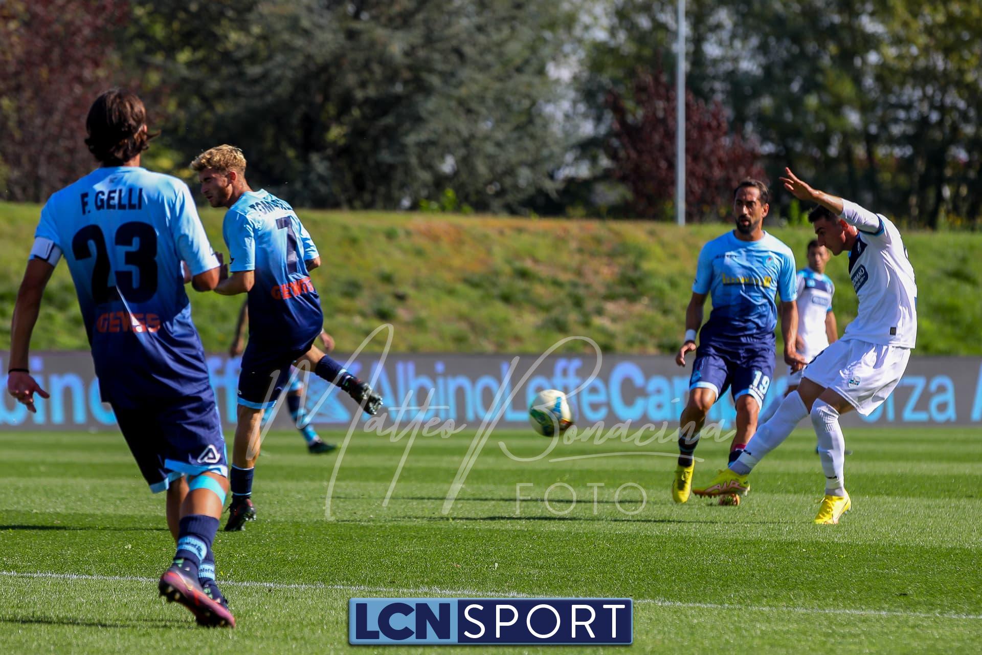 Azione prolungata dell’Albinoleffe al 19′, la palla arriva a Doumbia che dal limite dell’area ci prova di prima intenzione, Melgrati devia sopra la traversa. Il gol dell’Albinoleffe al 28′, palla a sinistra per Manconi che dal limite dell’area lascia partire un gran tiro sul secondo palo, la cui traiettoria è imparabile per il portiere bluceleste. Il Lecco si scuote con Maldonado che dai 25 metri va al tiro, la palla si alza subito. Punizione di Gelli al 38′, calciata benissimo, con palla diretta all’incrocio e super parata di Melgrati.