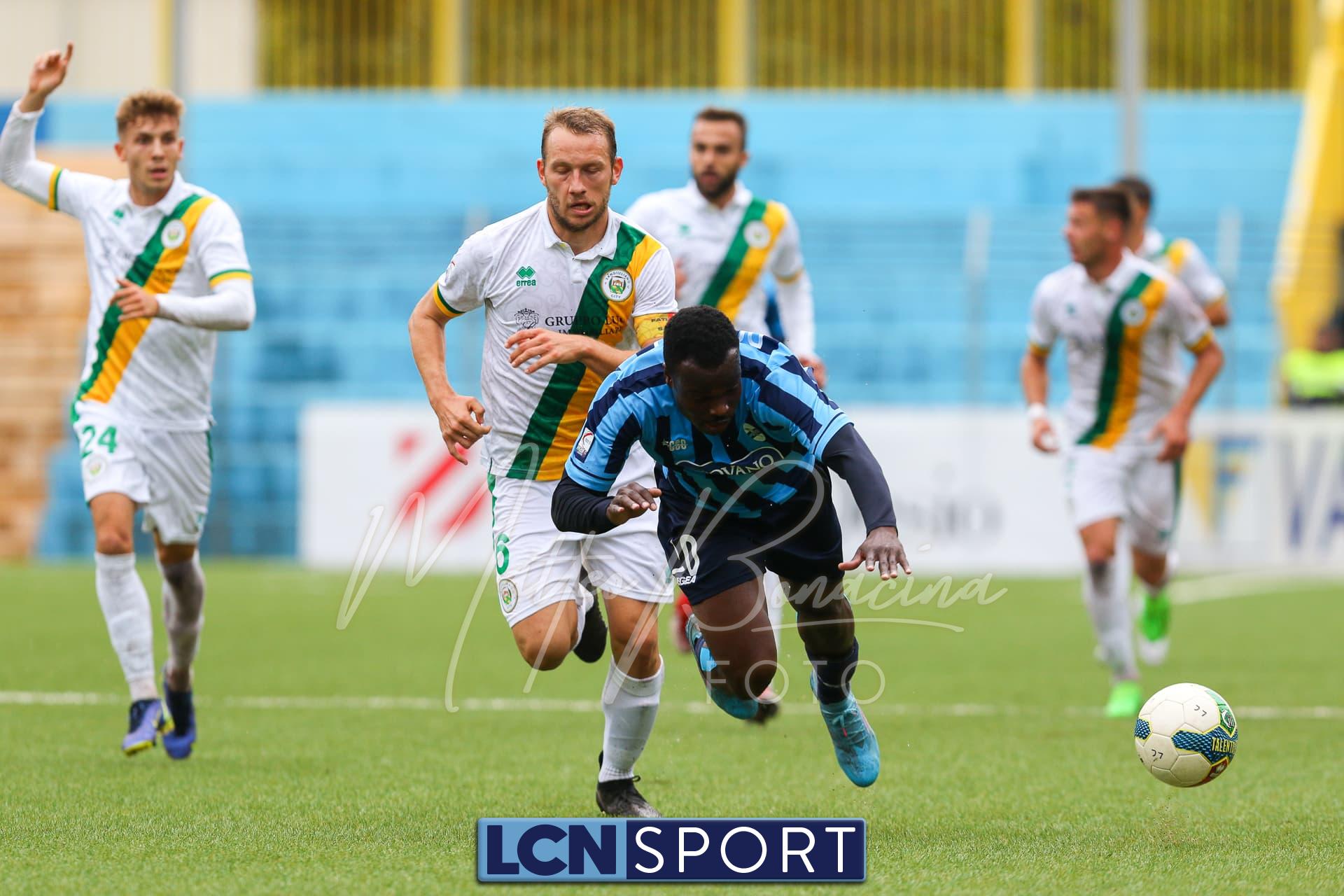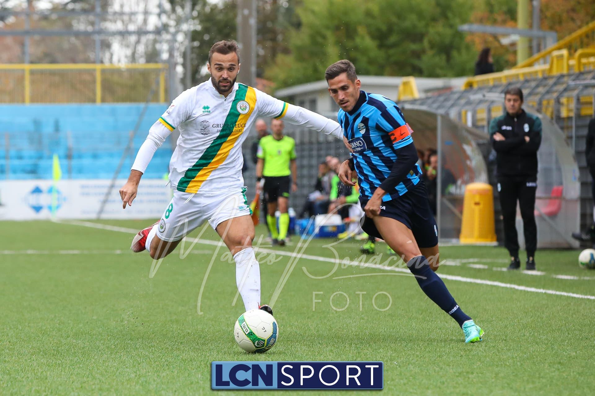 Prima azione per il Lecco che sfrutta una bella apertura di Mangni per Girelli che sgroppa sino al limite dell’area ma crossa addosso a Pedone. Contropiede al 4′ del Sangiuliano, sfruttando un fallo non fischiato su Maldonado: Fall gestisce la transizione e serve Fusi che da posizione favorevole spara in Curva Sud.