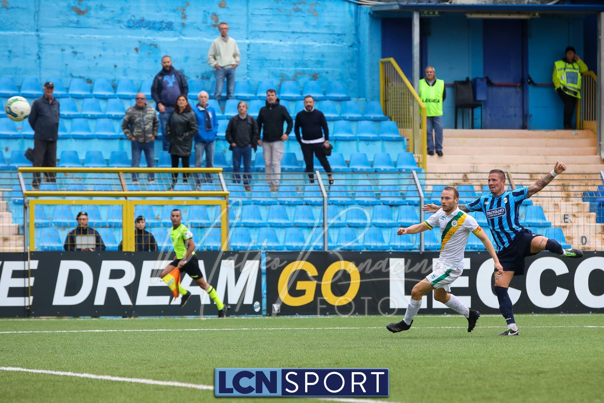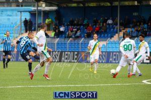 Dentro Galli e Zuccon per gli spenti Maldonado e Lakti, il Lecco per dieci minuti è costantemente nella metà campo ospite. All’improvviso, al 54′, occasionissima per il Sangiuliano col cross da destra e il piattone a botta sicura di Cogliati che colpisce l’esterno della rete. Gol sbagliato, gol subito: Zuccon sfrutta un rimpallo ed entra in area, bravo a puntare il fondo e a metterla in mezzo in spaccata; Mangni è chiuso da due avversari ma colpisce con il tacco per il vantaggio del Lecco.