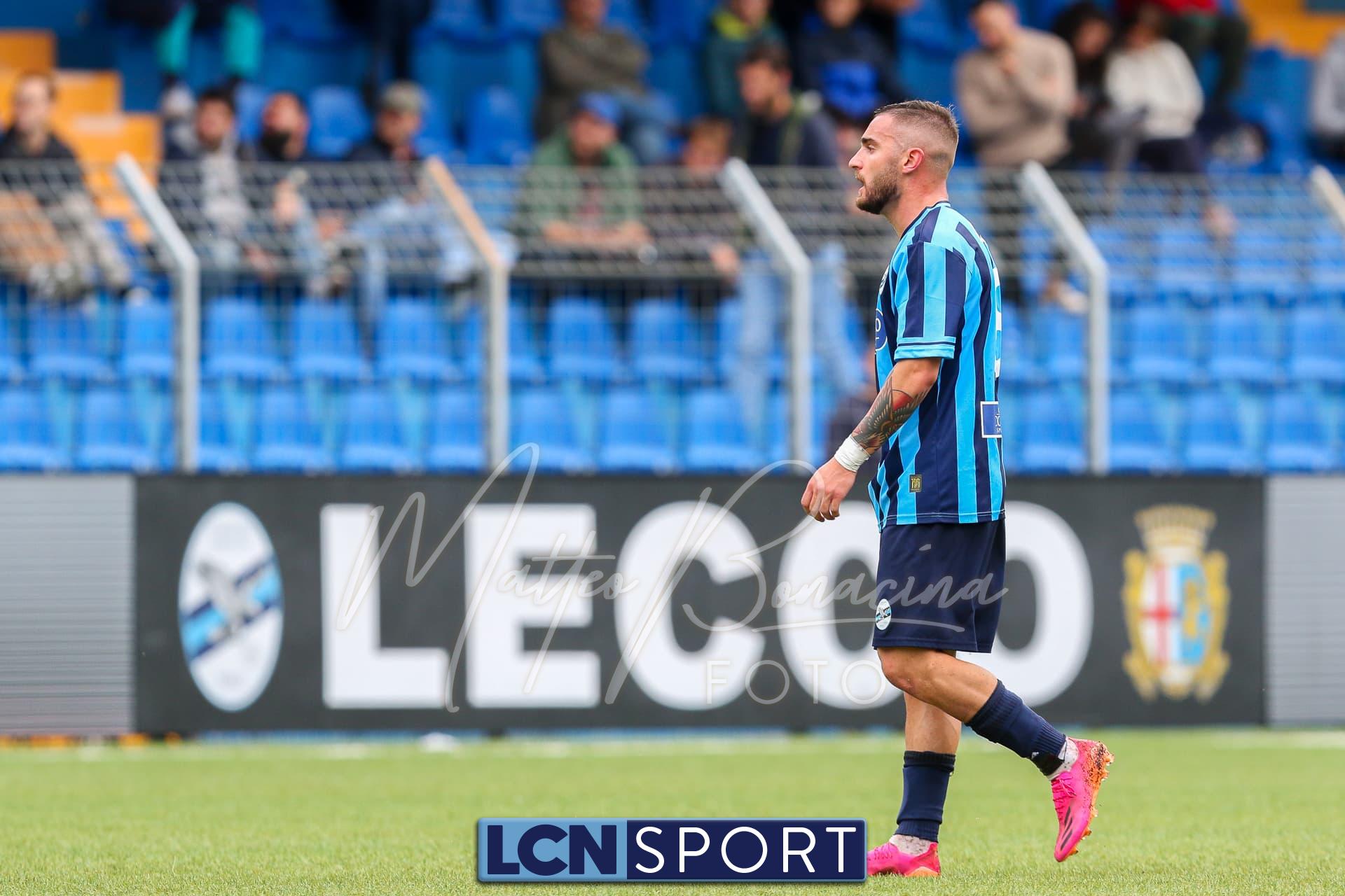 Il Sangiuliano cerca di reagire al 76′ ma la punizione di Queros è una telefonata a Melgrati. Entra Scapuzzi e all’80’ ha subito la chance su una bella azione da destra di Zuccon, fuori. Un minuto dopo gol annullato allo stessi Scapuzzi per fuorigioco. Il Lecco nel finale controlla e ci prova da fuori con Giudici prima e Girelli poi, con parate semplici del portiere ospite. Nel recupero bella girata di Pinzauti che calcia forte col sinistro, trovando la respinta di D’Alterio, questa volta difficoltosa.
