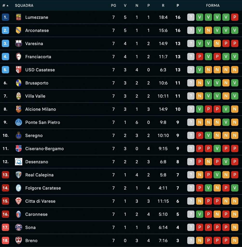 Firma pesante, risultato pesante. Il rigore trasformato da Mattia Isella sul campo della Franciacorta permette alla squadra di mister Joey Commisso di rompere una serie di quattro pareggi consecutivi e di stendere una delle grandi favorite alla vittoria finale. Partita, come da programma, equilibrata quella disputata sul campo in erba sintetica di Adro: le due compagini partono bene, ma non trovano lo spazio giusto per far male all’avversario, mentre a inizio ripresa il bresciano Invernizzi spreca a tu per tu con Picarelli l’occasionissima per spaccare la gara centrando un palo clamoroso. La Casatese si fa vedere con Pontiggia da calcio piazzato, ma è a ridosso dell’ultimo quarto d’ora che la partita cambia: Quaggio si muove bene sulla destra, Riva entra in ritardo e lo stende; rigore ineccepibile che Isella trasforma calciando a incrociare con il destro. Ultimo squillo locale di Scaglia a cinque minuti dal novantesimo, ma Picarelli è attento e sventa, poi Sala sfiora il raddoppio con un tiro dal limite che si perde di poco a lato. La Casatese si porta così al terzo posto e si prepara a ospitare il Lumezzane capolista tra le mura amiche del “Comunale”.