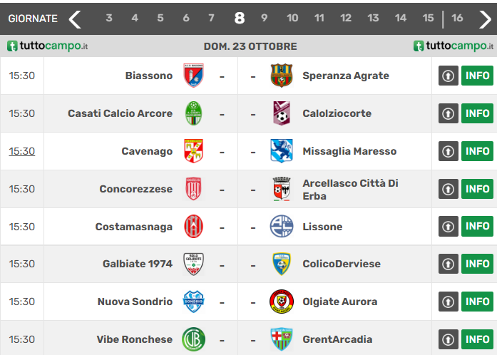 Di seguito vengono proposte graduatoria e sfide dell’ottavo turno del girone B di Promozione lombarda: