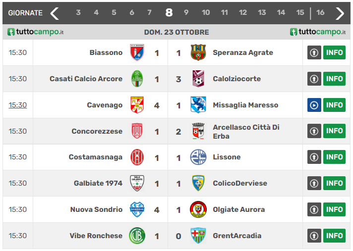 Di seguito vengono proposte la classifica e le sfide dell’ottavo turno del girone B di Promozione lombarda: